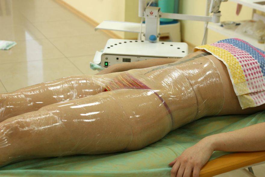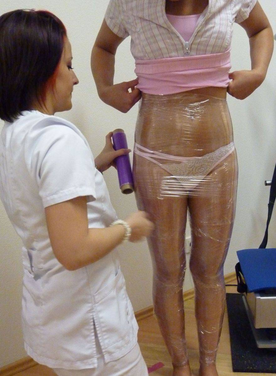 Обычно у человека с лишним весом имеется сразу несколько проблемных мест на теле. И, в основном, все они располагаются ниже пояса. Именно эта зона – от талии до колен – покрывается пленкой. Иногда оборачивают и голень.