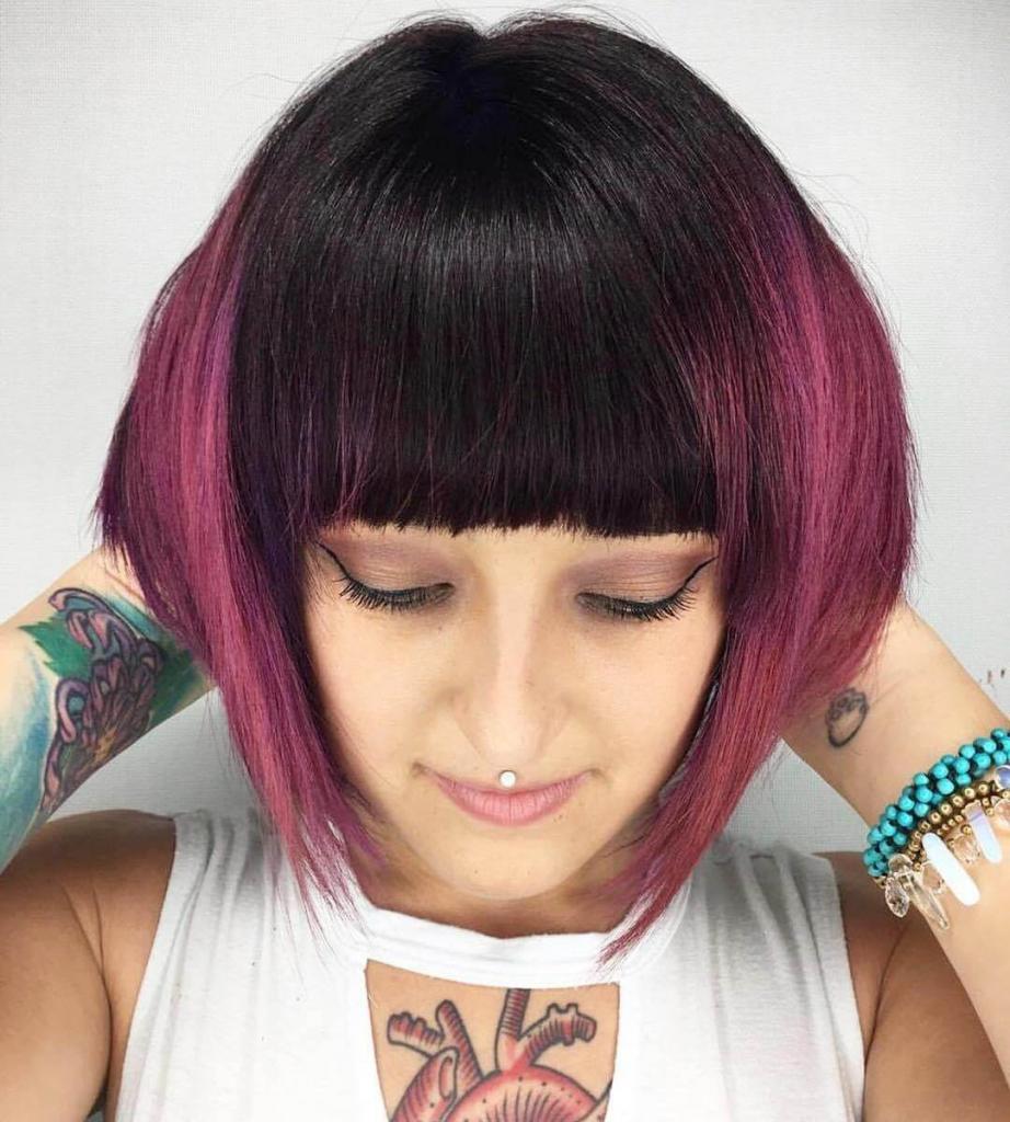 Также такой способ колорирования приглянулся работникам деловой сферы, где дресс-код не позволяет выражать свой внутренний мир через одежду, прическу и макияж. Зато в свободное от работы время они могут выражать свою индивидуальность как хотят.. Скрытое окрашивание у лица у висков — интересное решение.