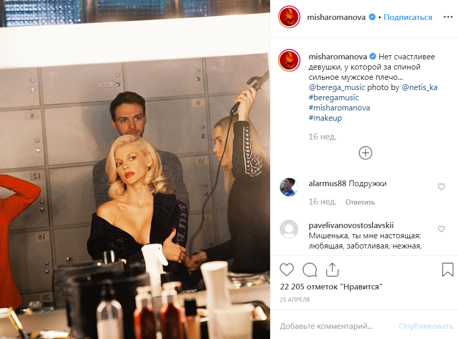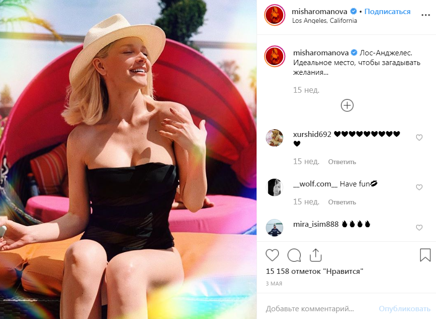 Несмотря на скрытность, Миша активно ведет персональный аккаунт в «Инстаграме», где за ее публикациями следит многочисленная армия поклонников. Романова делится фото с работы и постит забавные повседневные снимки.