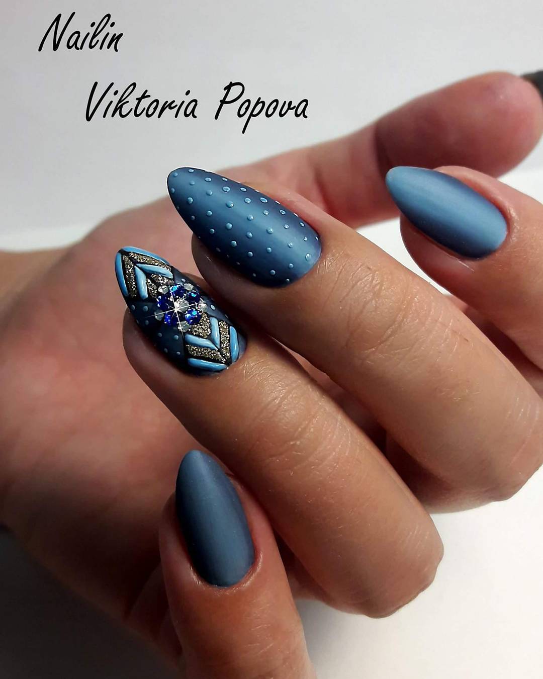 По данным института Pantone в 2021 году в моде множество оттенков синего, от более светлых до более темных насыщенных, в зависимости от того, какой оттенок вы выберете для своего маникюра, он обязательно будет в тренде этой осенью.