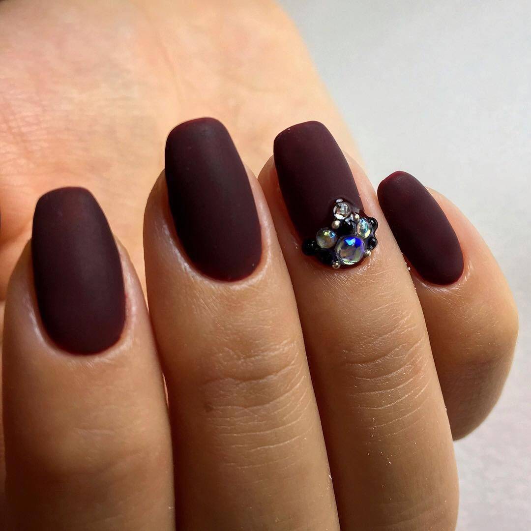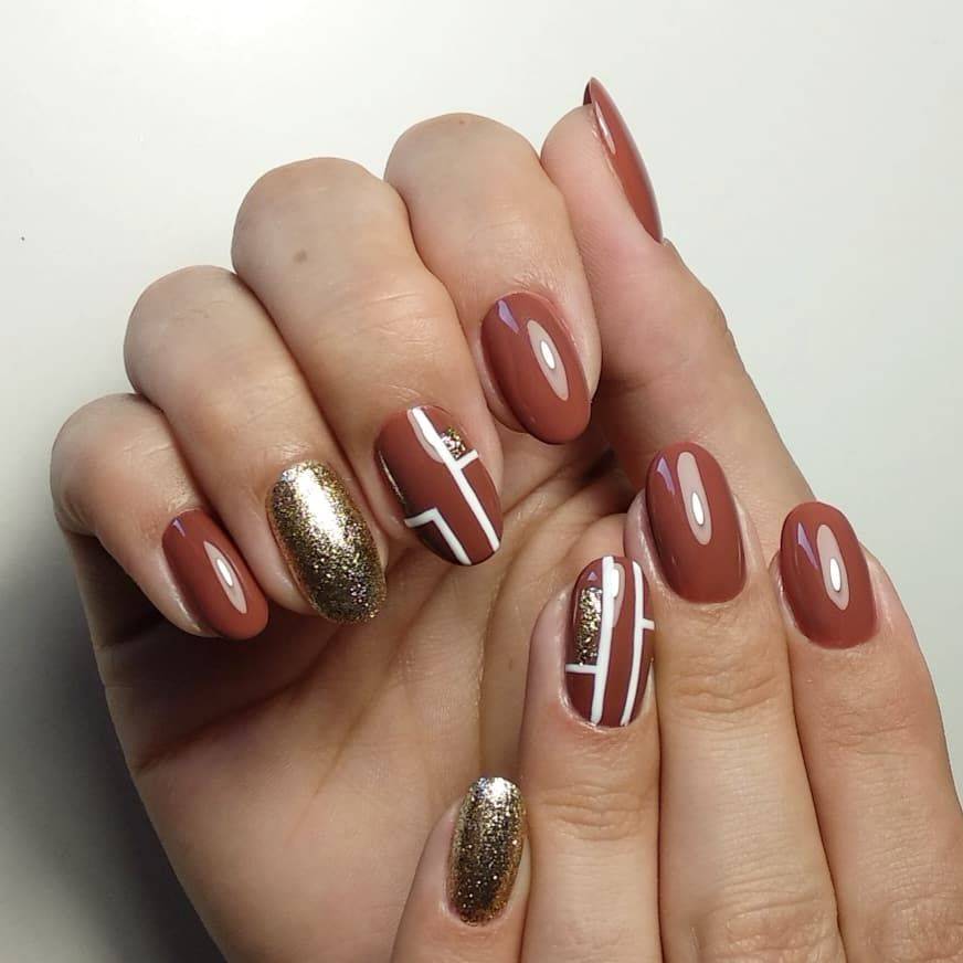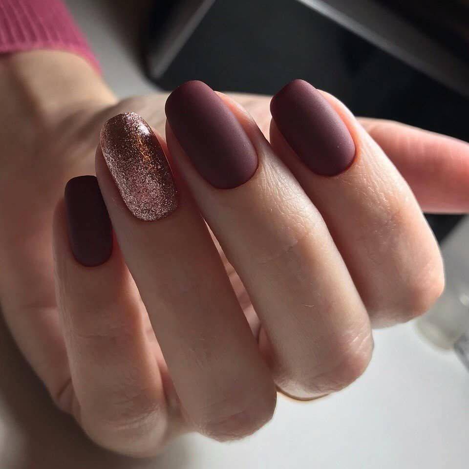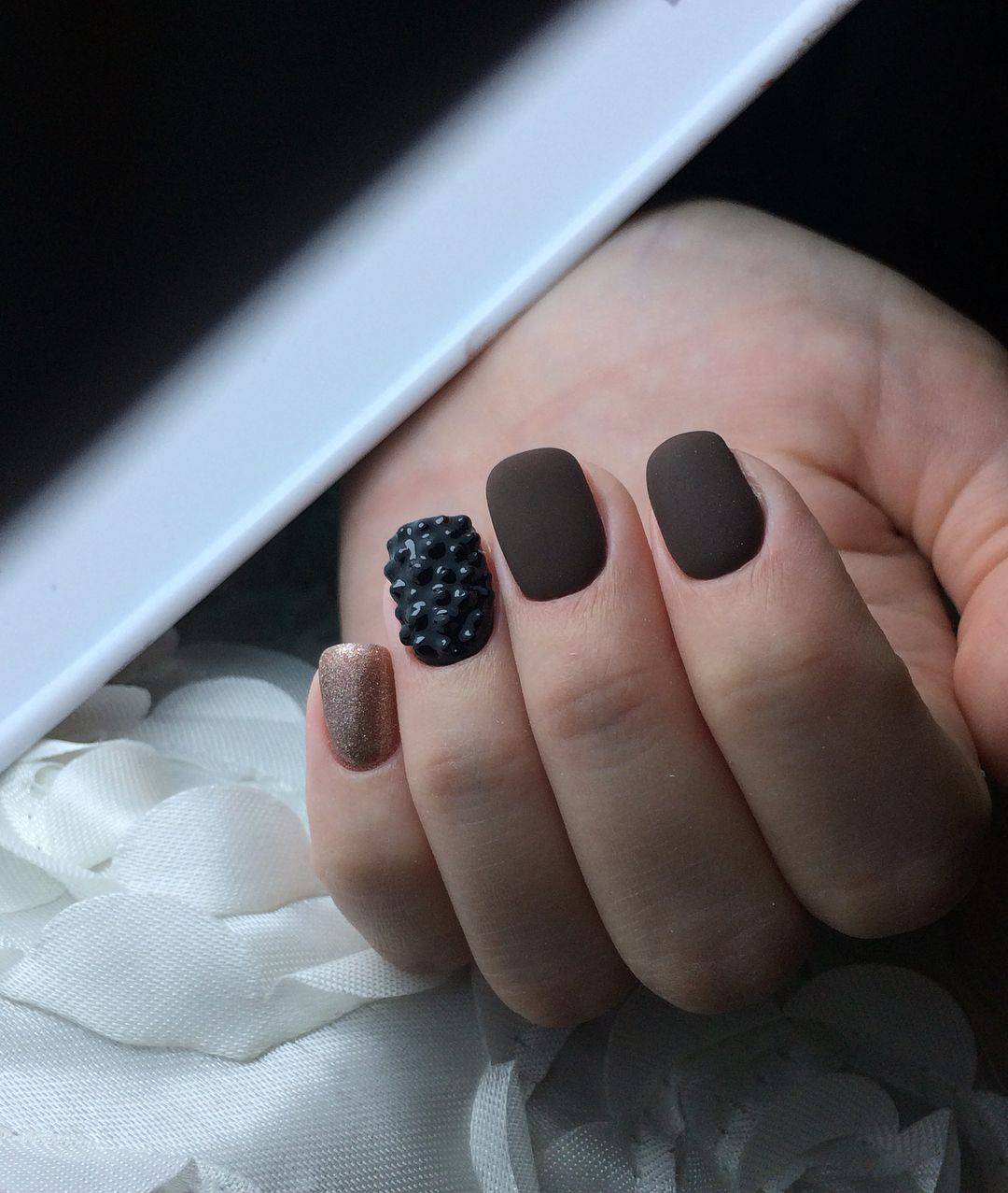 Оттенки насыщенного шоколада подходят к любому образу осеннего сезона 2021. Очень красиво коричневый маникюр смотрится на коротких ногтях, а в дизайне этот цвет отлично сочетается с теплыми золотыми блестками или фольгой.