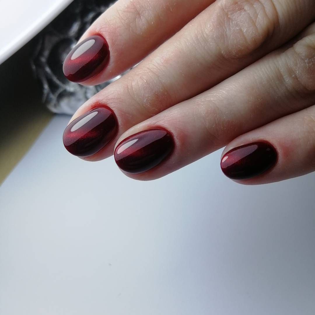 Темно-красный цвет лака, не взирая на свою претенциозность, уже стал базовым вариантом повседневного маникюра. Да, выглядит ярко. Но насколько хорошо вживается в роль красивого и правильного акцента в образе. Заметьте, с объёмными свитерами и пиджаками оверсайз все варианты бургунди или ярко-алого выглядят интригующе и более интересно, чем с черным облегающим пафосным платьем или полупрозрачной блузой. Alice + Olivia и Oscar De La Renta выбрали классическое однотонное покрытие на коротких ногтях.