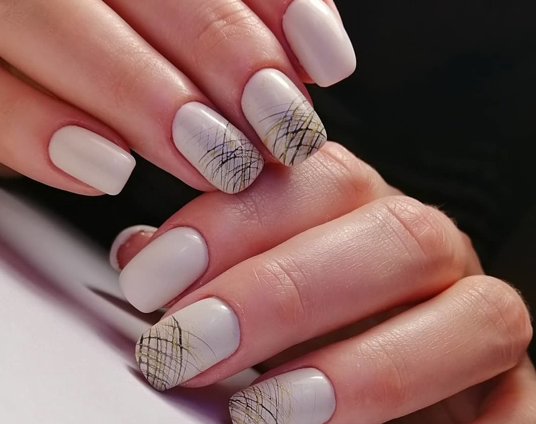 Эффект негативного пространства будет очень широко использоваться в 2021-2022 году. В белом исполнении он будет казаться еще более нежным и аккуратным. Для контрастности можно добавлять элементы декора, прорисовывать линии, геометрические фигуры, добавлять стразы, блестящие ленты.