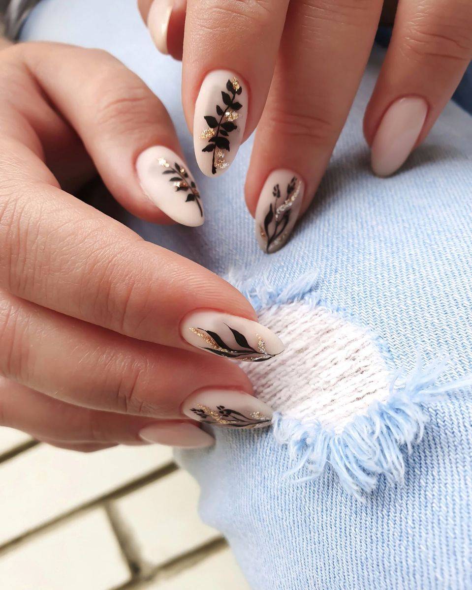 В тренде 2020 года маникюр с цветочным рисунком. В зависимости от выбранного стиля дизайн смотрится совершенно по-разному. Тонкие веточки, небольшие бутоны свойственны стилю минимализм. Крупные, объемные цветы с тщательной прорисовкой деталей выполнены в стиле реализм. Для нанесения такого рисунка нужны определенные художественные способности, поэтому сделать его в домашних условиях проблематично