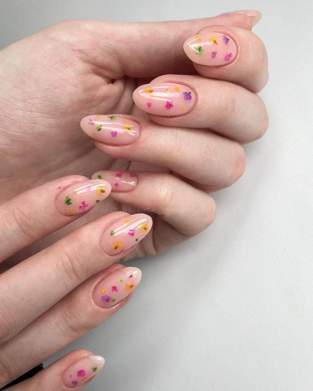 Сухоцветы. Превосходно комбинируются с гель-лаками натуральных оттенков или с витражными полупрозрачными покрытиями.