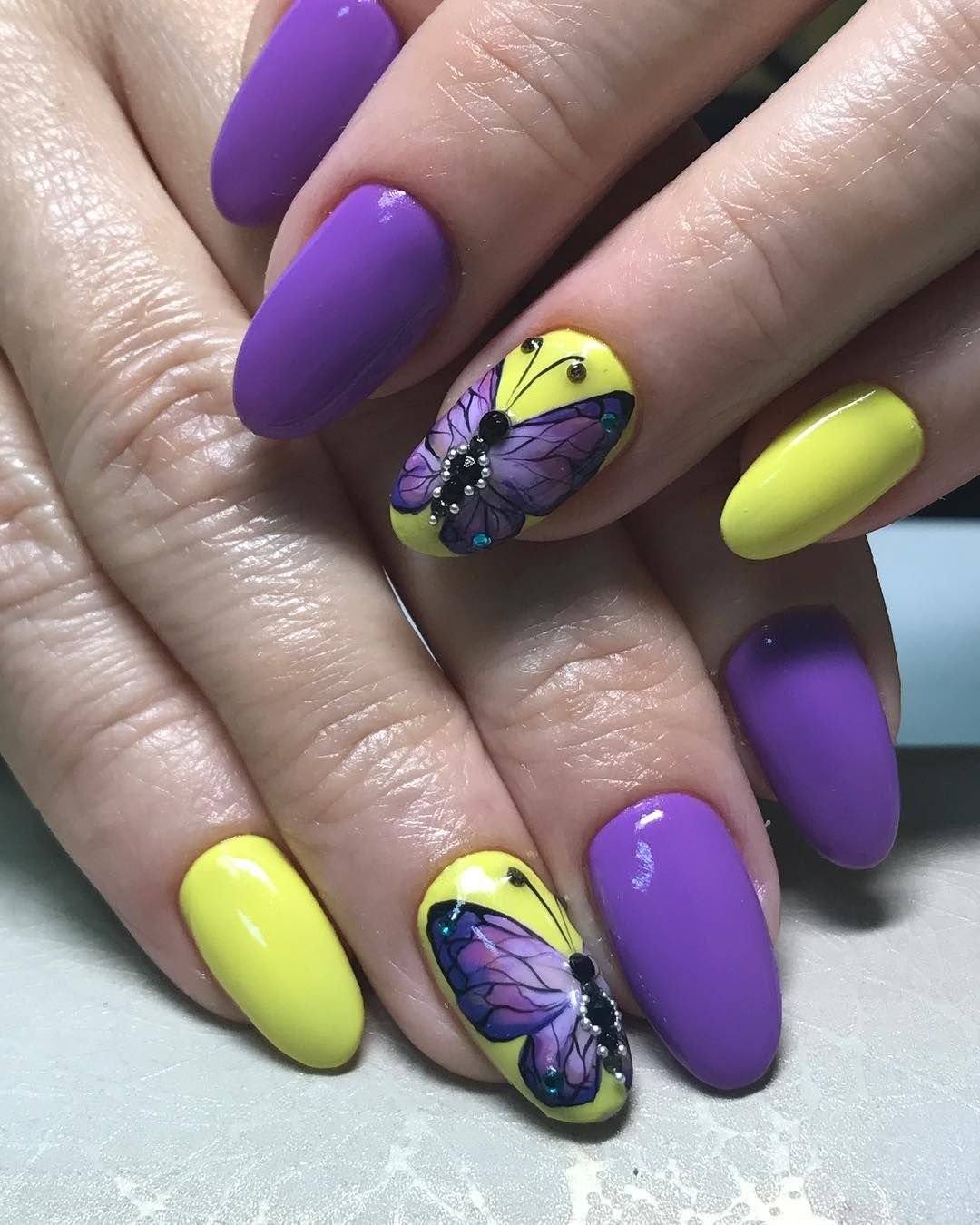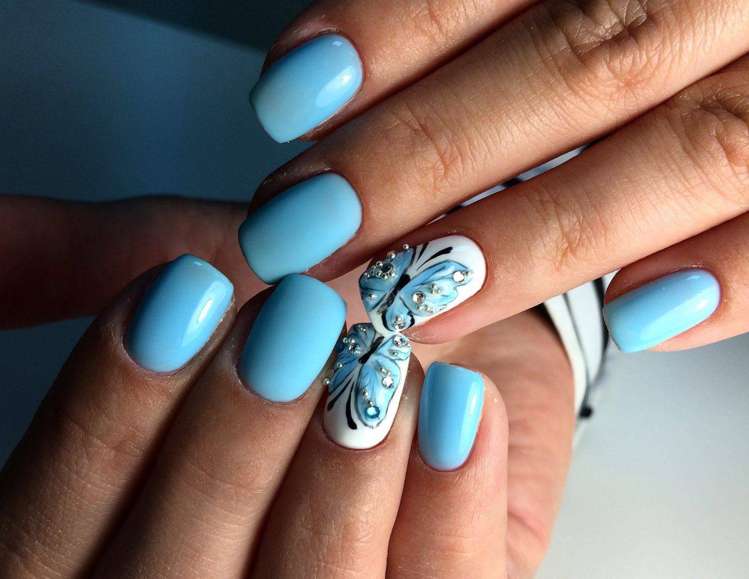 В летнем сезоне как никогда становится актуальным принт бабочек на ноготках. Они могут быть реалистичными, схематичными, объемными и с дополнительными украшениями. Но в любом случае такой дизайн всегда придает маникюру особую легкость, невесомость