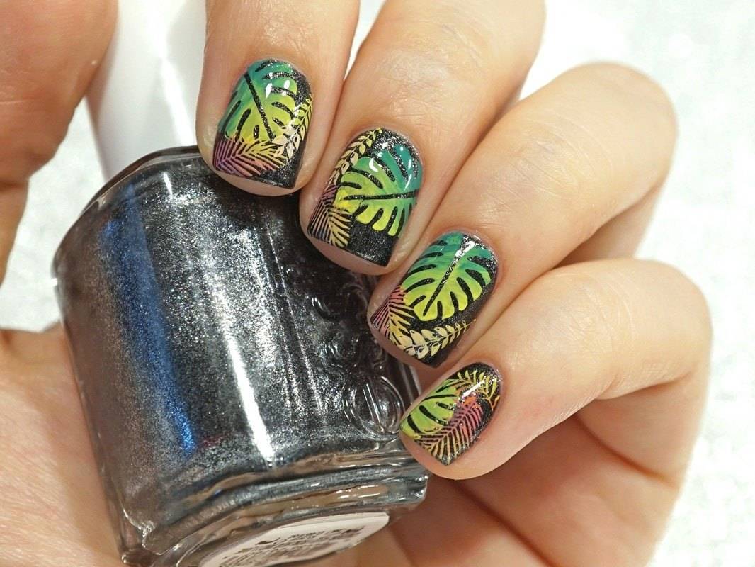 Когда, если не летом украшать ноготки тропическим принтом в виде листвы и цветов. Это один из самых любимых видов дизайна современных модниц. Тем более, что его можно не только нарисовать вручную, но и сделать в домашних условиях. Для этого понадобится приобрести наклейки или слайдеры, которые помогут реализовать понравившуюся идею оформления. Конечно же, процесс перенесения достаточно прост, но новичкам может понадобится немного практики. Такой дизайн можно украсить небольшим количеством блесток и страз, чтобы придать ему большей яркости.