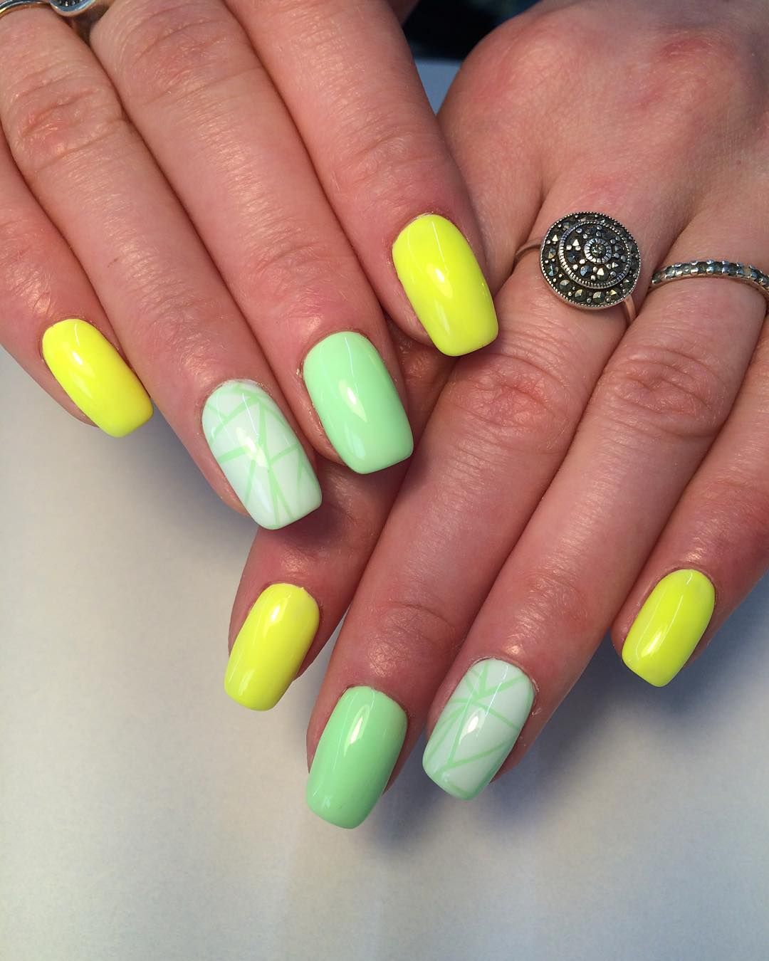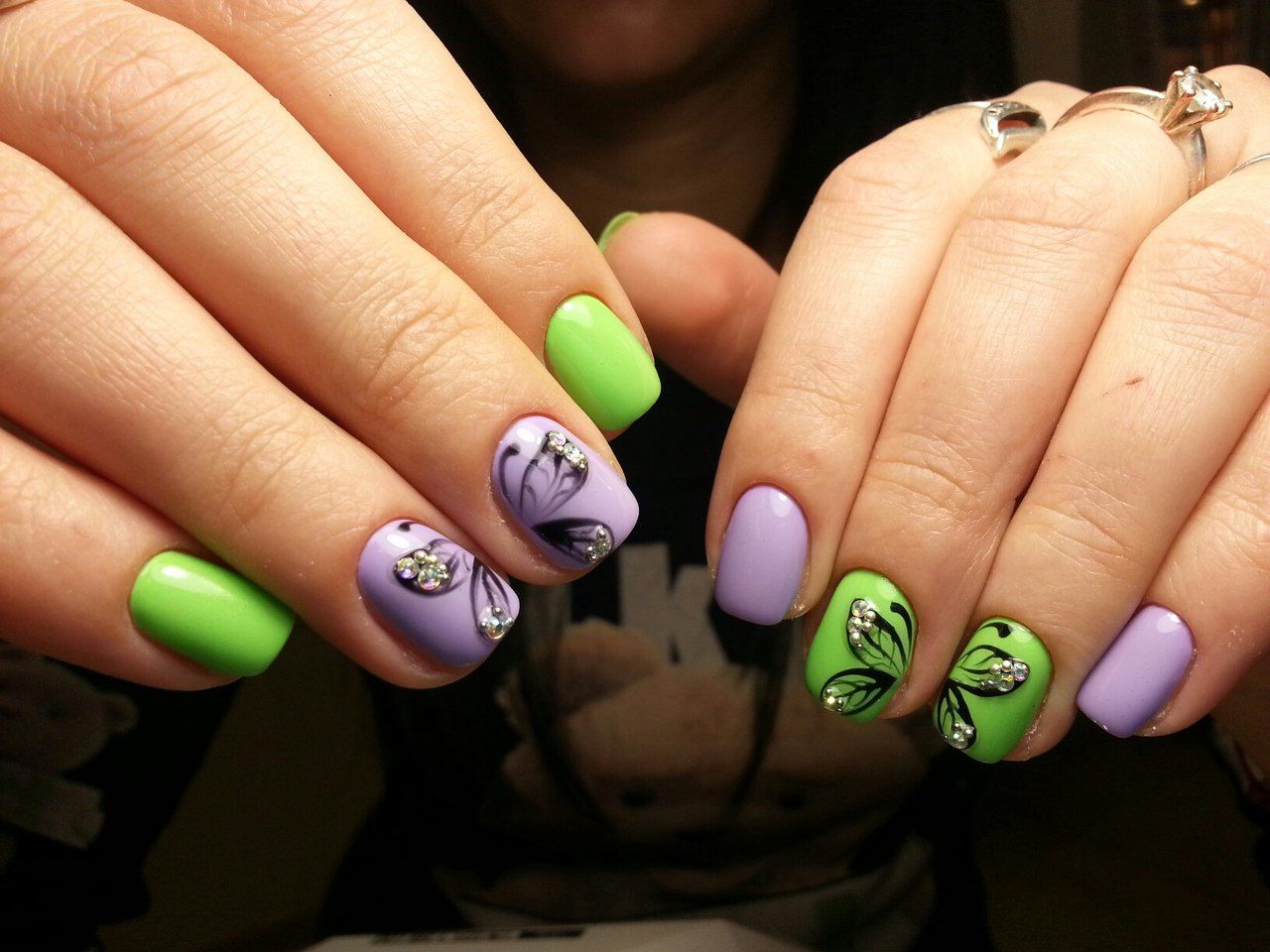 - однотонное покрытие разными цветами на выборочных пальцах;