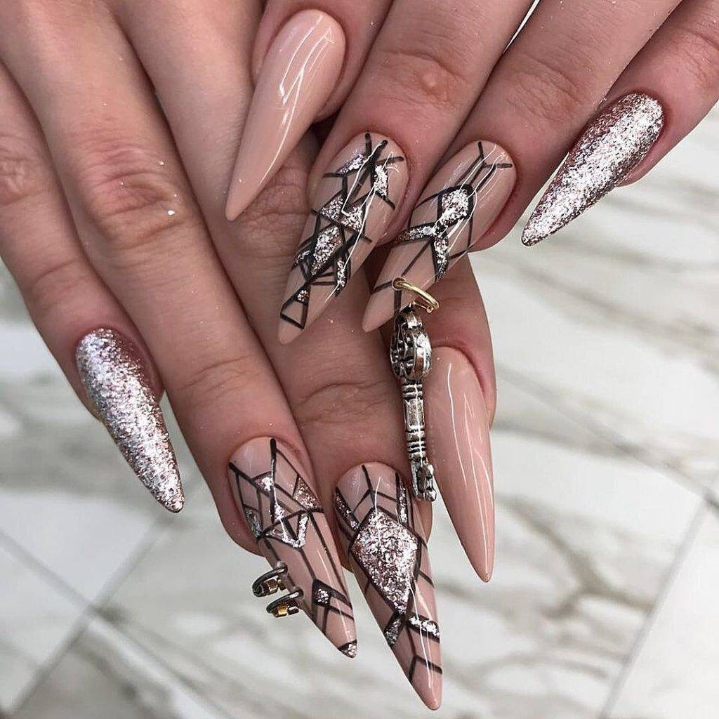 Красивый молодежный маникюр на длинных ногтях