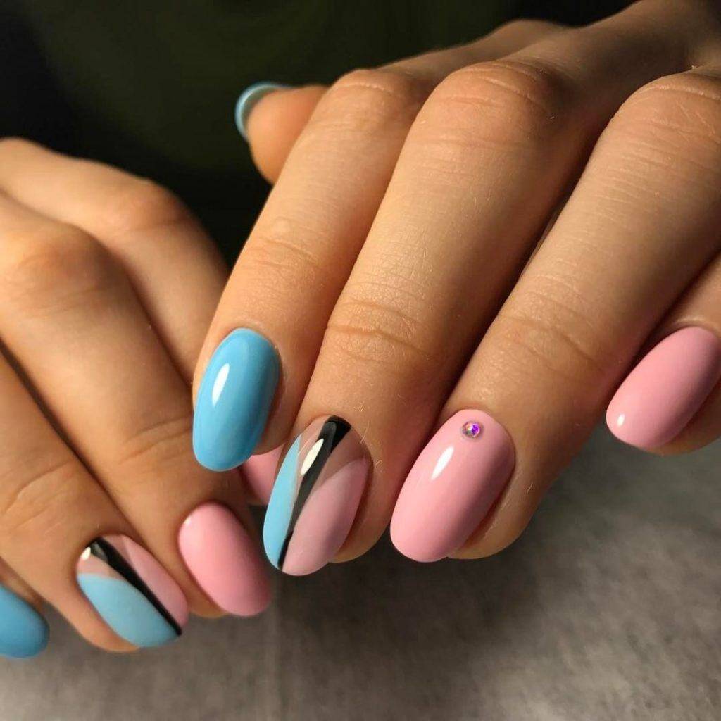 Очень популярным в этом году считается геометрический рисунок. Стоит отметить, что не обязательно делать всякие ромбы и кружечки, достаточно будет нанести пару ломаных линий, либо зигзагов, а также полосок. Еще одним, очень популярным дизайном, считается градиент. Главным правилом выполнения маникюра, считается правильно подобранные цвета. Лучшие идеи данного маникюра на 2019 год смотрите в нашей фото подборке