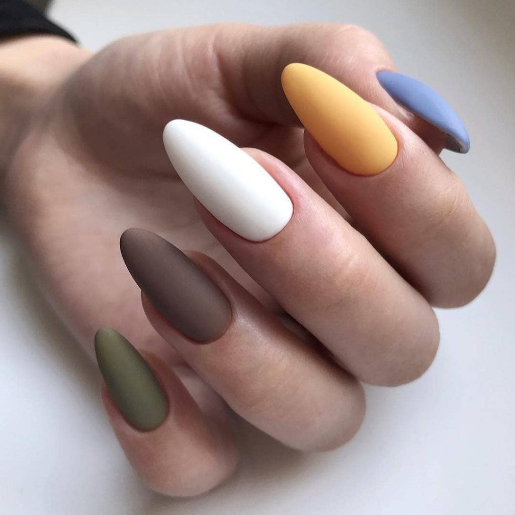 Молодежный маникюр допускает окрашивание всех ногтей в различные цвета и с различным дизайном узора.