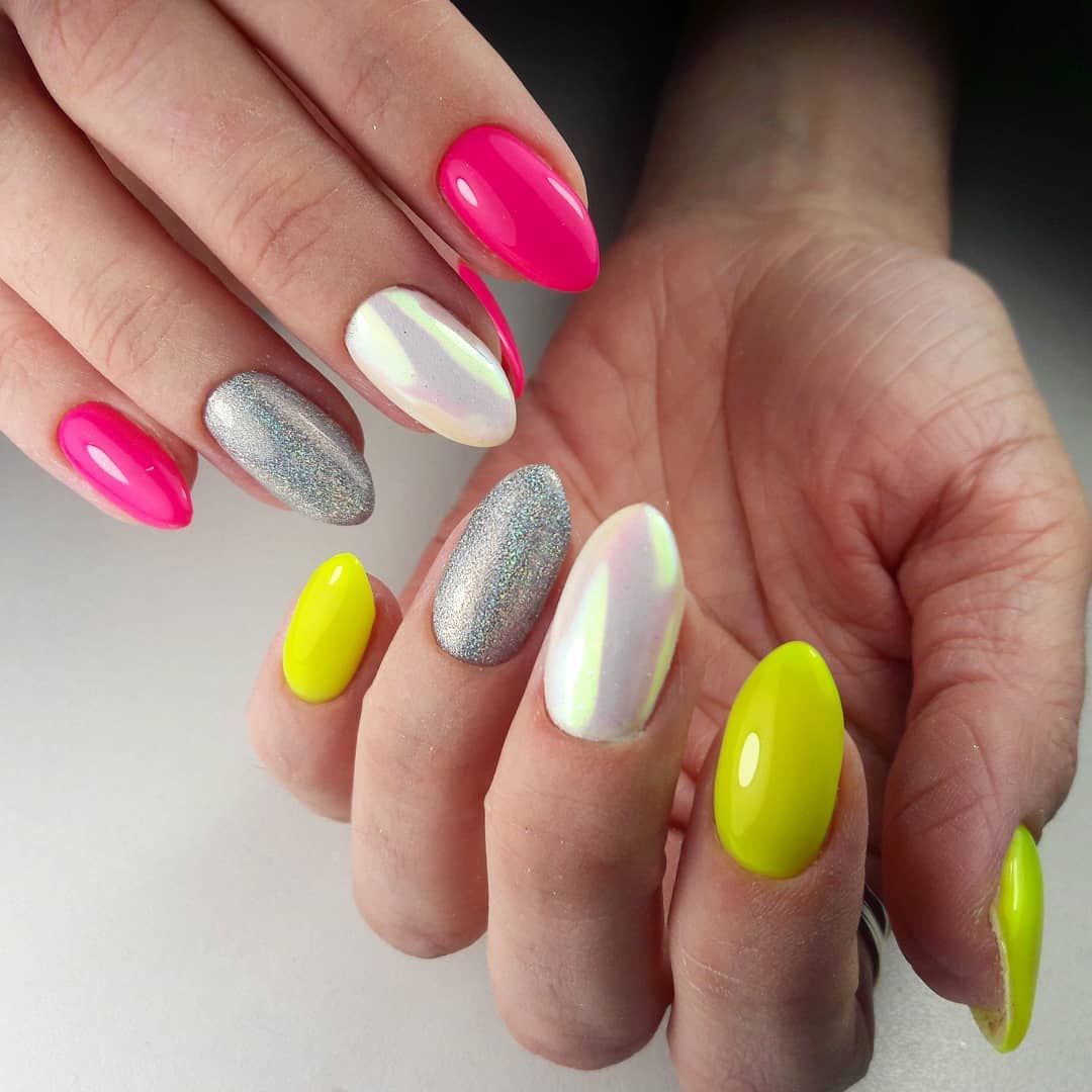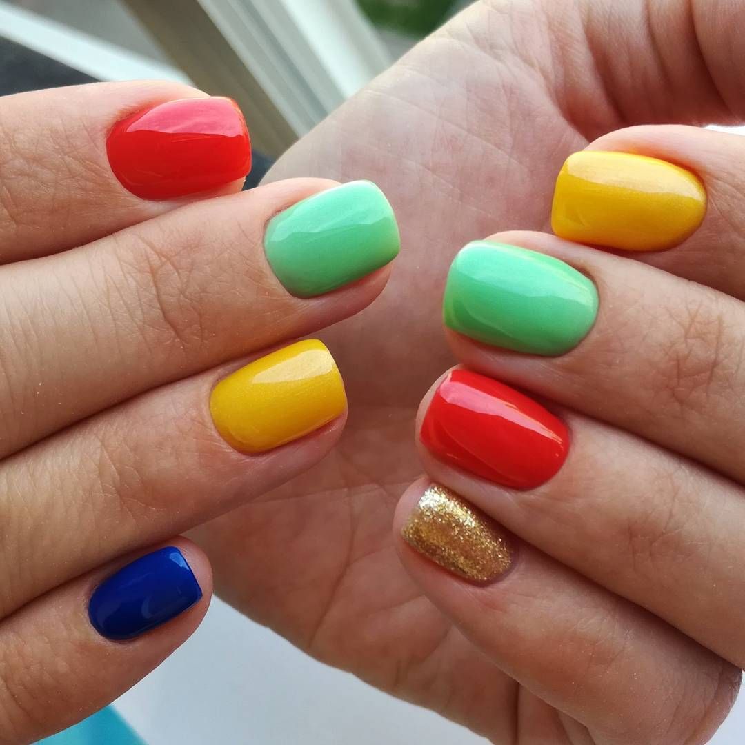 Молодежный маникюр в 2022 году абсолютно открыт для разнообразных экспериментов с блестящими лаками и украшениями: зеркальные втирки разных оттенков, сияющие светоотражающие лаки, блестки, глиттер, пайетки, поталь, фольга и многие другие. Очень часто юные представительницы прекрасного выбирают разноцветный маникюр. Для этого молодежного дизайна характерно покрытие каждого ногтя отдельным цветам. Палитра в данном случае выбирается в ярких кислотных оттенках или приглушенных тонах.