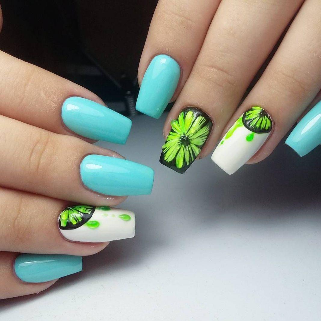 Не стоит рисовать цветы на всех ногтях, лучше сделать акцент на одном или нескольких. Очень популярным в этом году считается геометрический рисунок. Стоит отметить, что не обязательно делать всякие ромбы и кружечки, достаточно будет нанести пару ломаных линий, либо зигзагов, а также полосок. Еще одним, очень популярным дизайном, считается градиент. Главным правилом выполнения маникюра, считается правильно подобранные цвета. Лучшие идеи данного маникюра на 2019 год смотрите в нашей фото подборке.