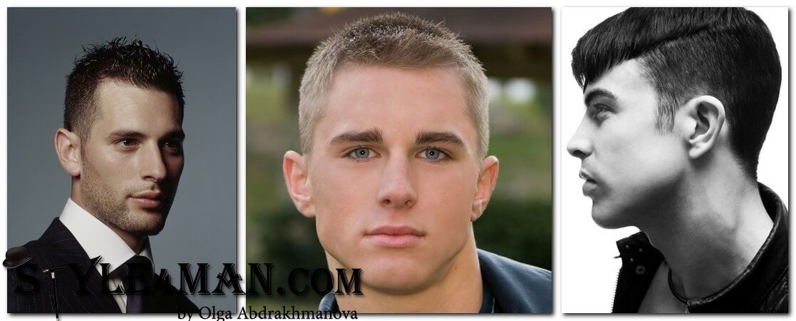- Ежик или бобрик. Эти практичные мужские прически выглядят замечательно. Длина волос должна быть не больше 2 см. Только у ежика округлая форма, а бобрик – квадратную.