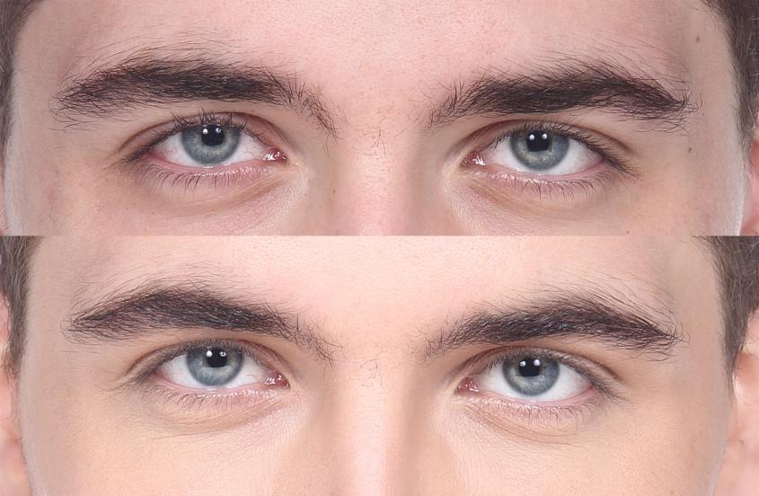 Исправление: нужно изменить форму. Но, как показывает жизнь, в большинстве случаев внешность мужчины не нуждается в столь радикальных преобразованиях. Эта процедура применима только тогда, когда линия размыта. С помощью пинцета или триммера можно легко удалить лишнюю растительность и придать бровям желаемую форму. Так выглядит мужская коррекция бровей — фото до и после: