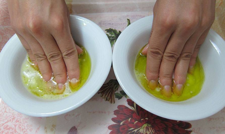 - Чтобы поддержать гибкость ногтя, прибегают ежедневно к масляным ванночкам.