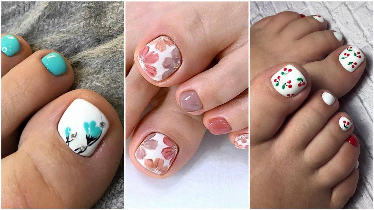 Для тех, кто не хочет привлекать к ступням излишнее внимание подойдет естественный вариант. На бесцветную основу можно нанести крохотный рисунок либо покрыть цветным лаком только ноготь большого пальца