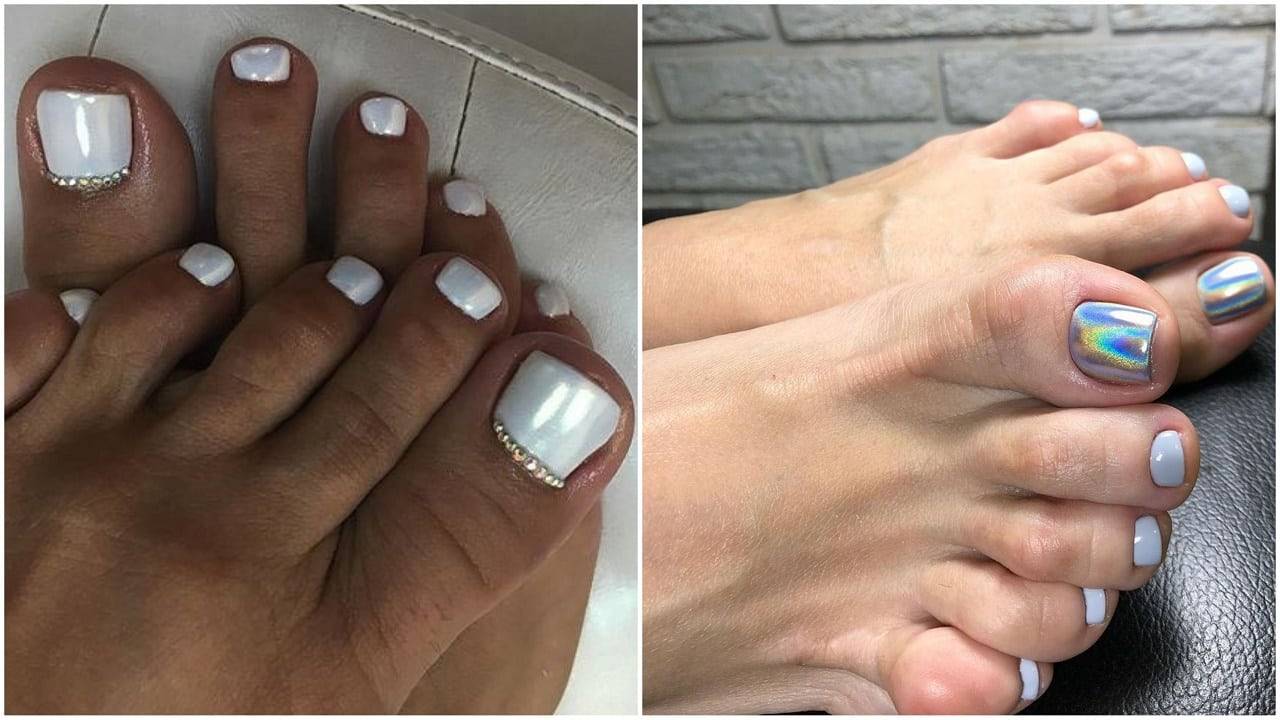 Перламутровый педикюр. Это отличный способ сделать короткие ноготки красивыми. Отражающая способность перламутра не утяжеляет педикюр и делает его немного удлиненным.