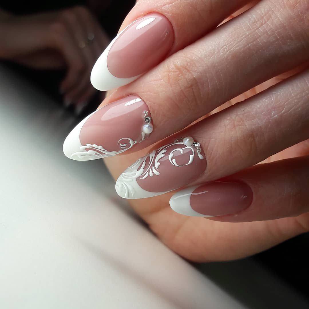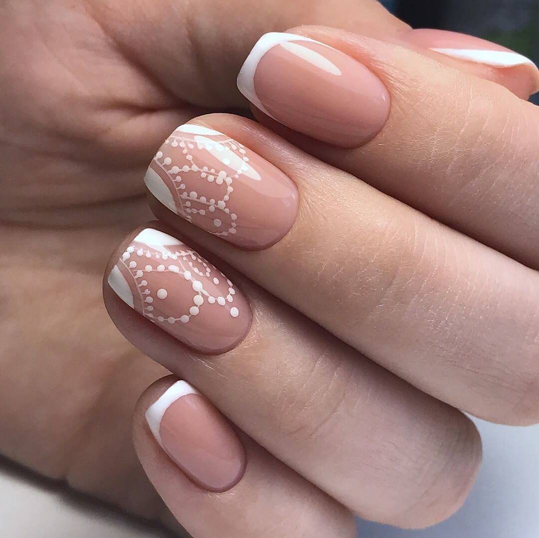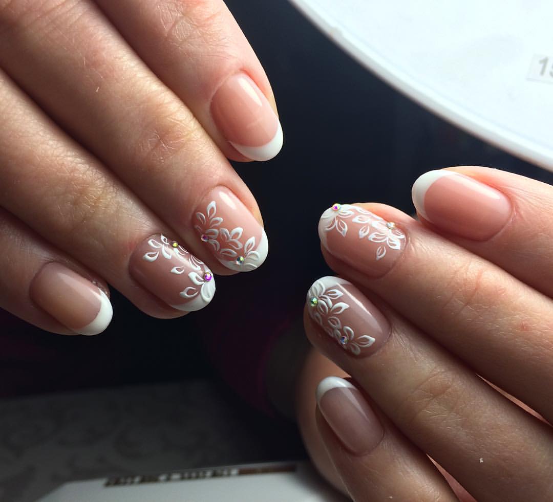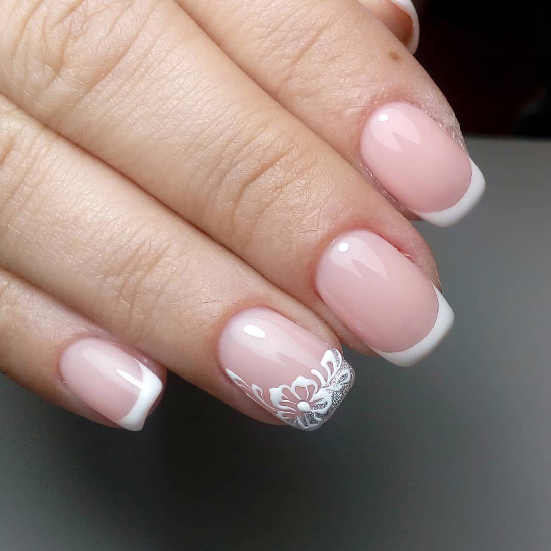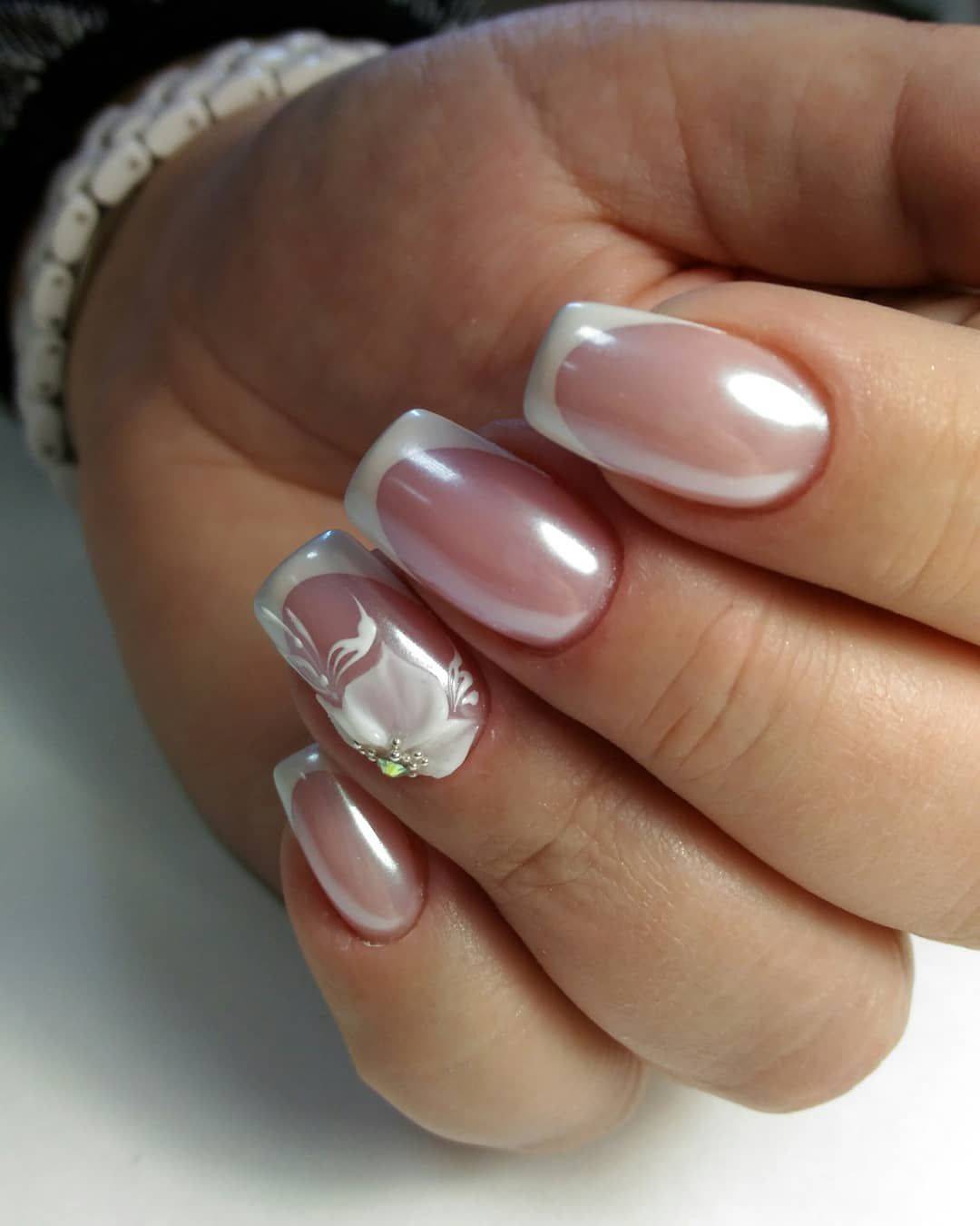 Французский маникюр – лучшее решение для такого важного мероприятия. Однако, не стоит ограничиваться классическим вариантом