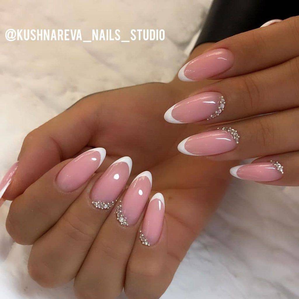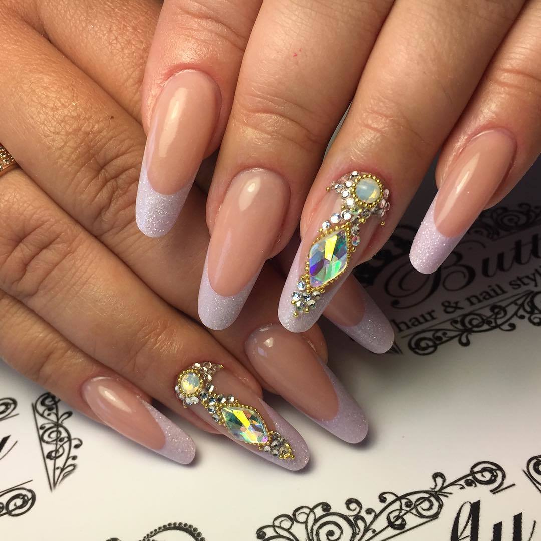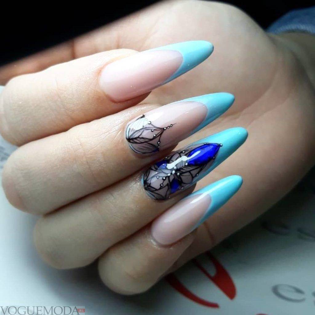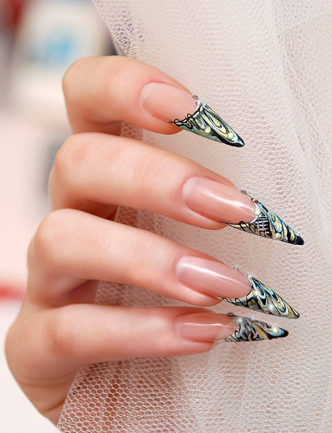 Длинные ноготки могут быть различной формы. На сегодняшний день наиболее популярными и модными являются несколько вариантов оформления ноготка для всеми любимого френча. Самая распространенная и гармоничная форма — это овальная, ведь для нее нет совершенно никаких запретов касаемо дизайна. Помимо овальной формы популярны миндалевидные и квадратные ноготки. Касаемо острых ноготков, то в последнее время их стали выбирать чаще