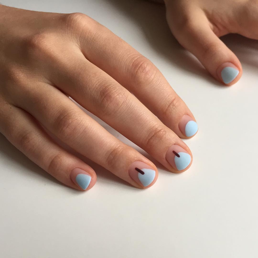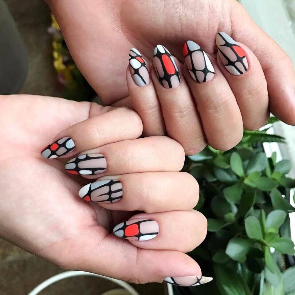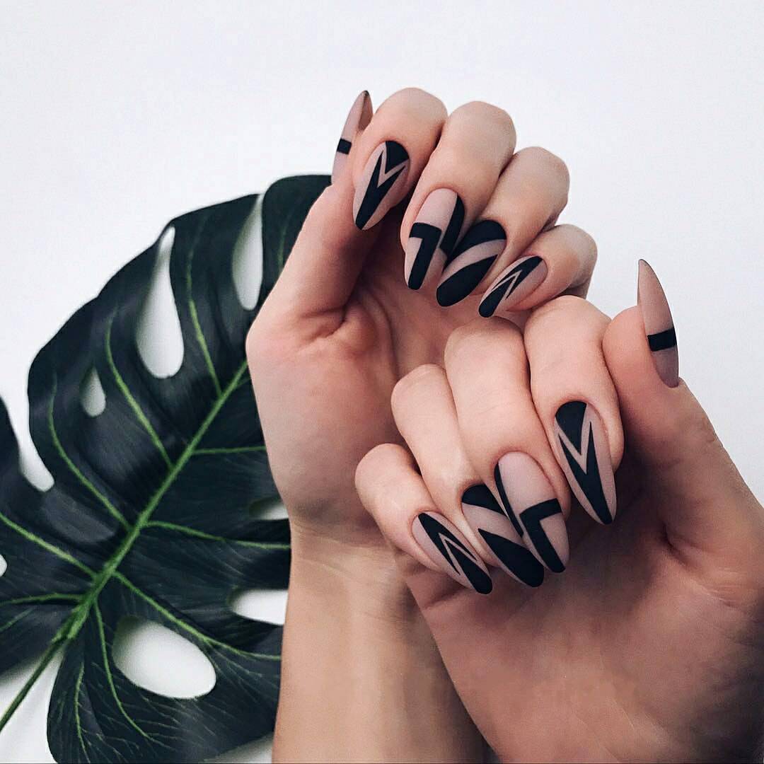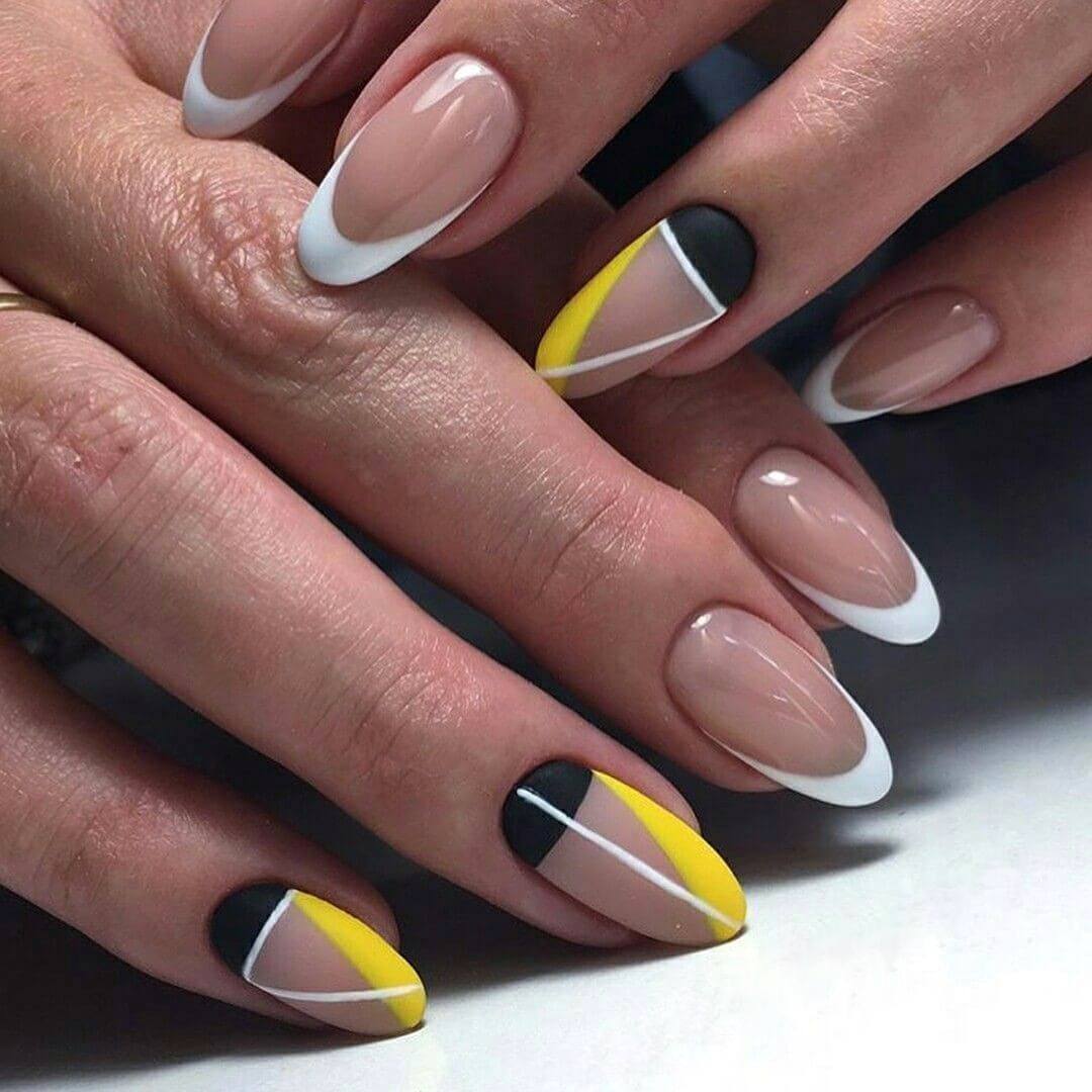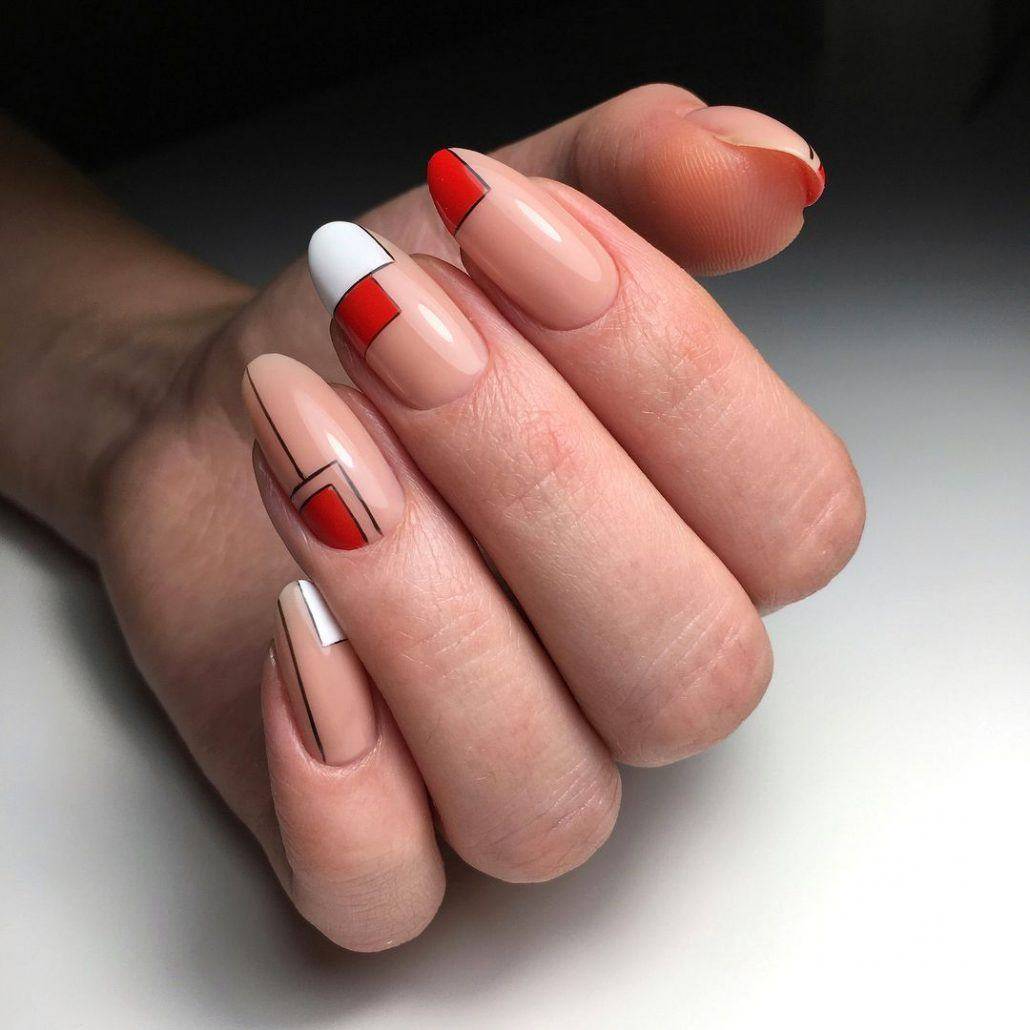 Геометрический рисунок уже длительное время входит в топ самых стильных видов дизайна ногтей. Он хорошо смотрится с френчем и делает его чуть более строгим, сдержанным. При желании его можно делать даже для рабочих будней. Но учитывайте, что в такой ситуации оттенки должны быть нейтральными.