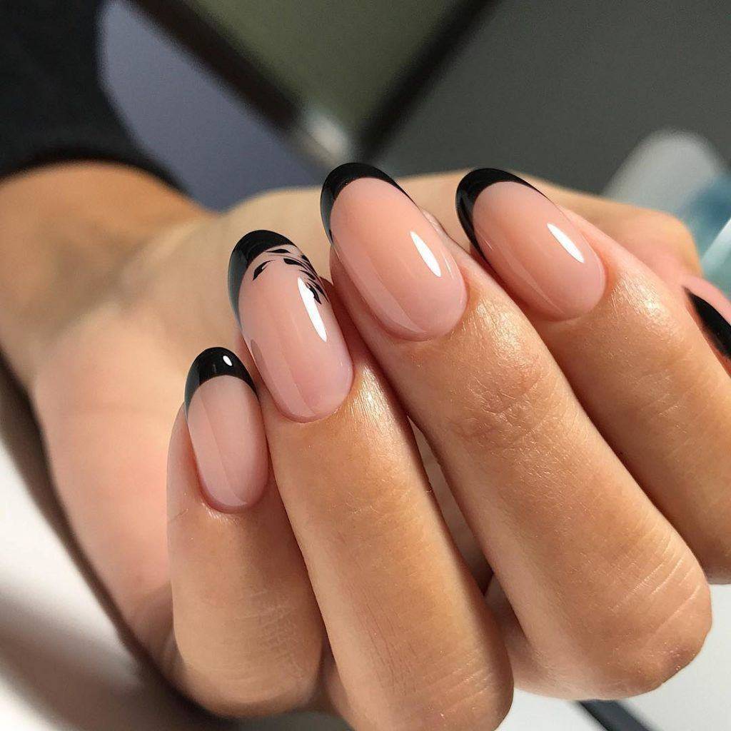 Перед тем как выводить красивую зону улыбки, необходимо определиться с формой ногтя, шириной зоны и ее изгибом на внутренней стороне. Красивый маникюр френч должен быть выдержан во всех пропорциях, именно это придаст ему элегантности. Интересный вариант – использование темных, глубоких тонов с топом разной фактуры: глянцевым и матовым.