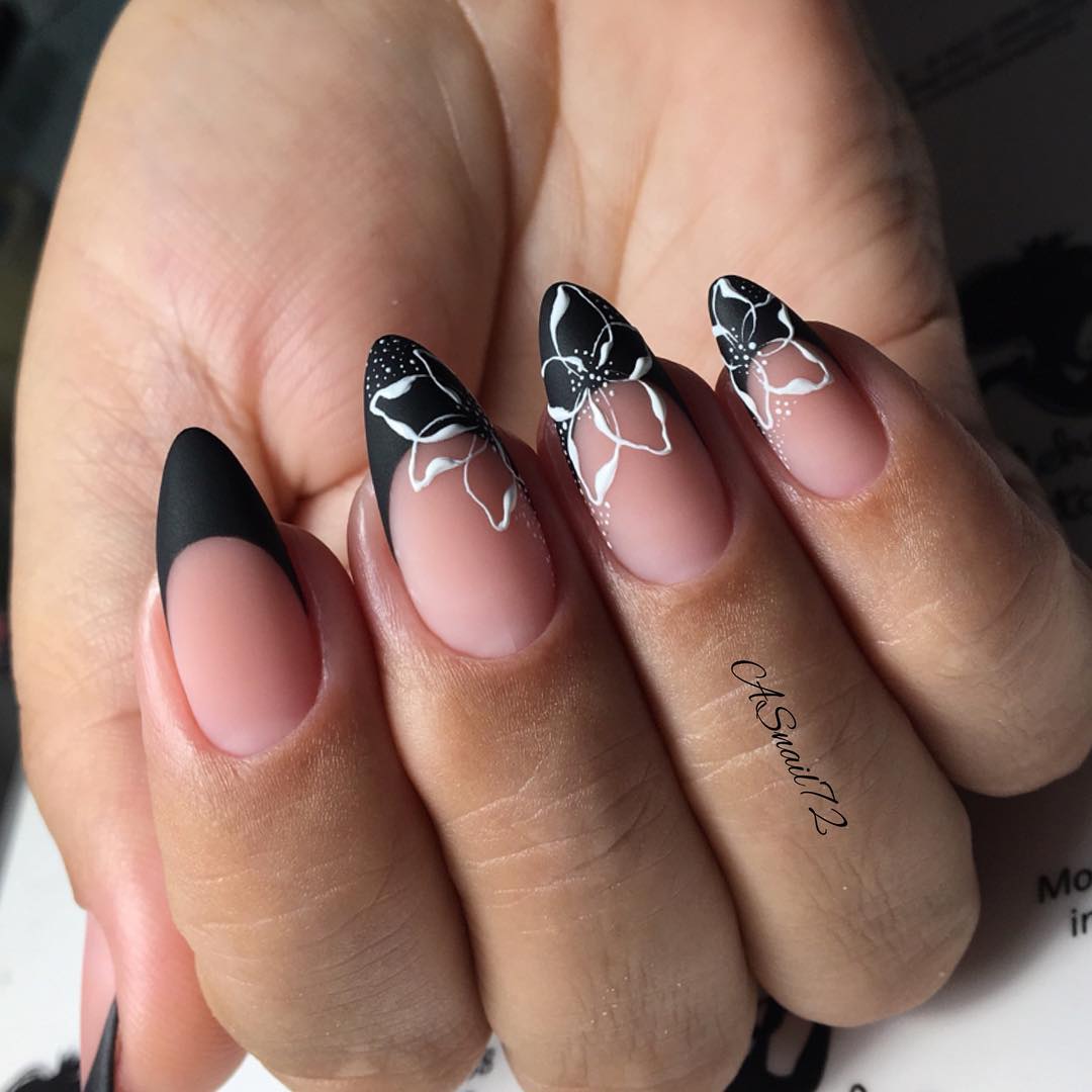 Нельзя отрицать актуальность цветочного рисунка. Он идеально дополняет французский маникюр и отлично смотрится в любое время года. Тонкие веточки и бутоны преимущественно выбирают осенью или зимой. Также это идеальное решение для любительниц лаконичных образов.