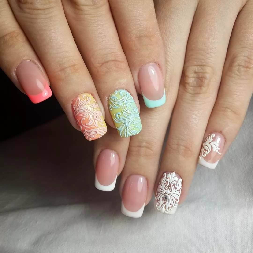 Причем вовсе неважно, будут это темные, пастельные или яркие оттенки. Каждый из них преображает френч до неузнаваемости