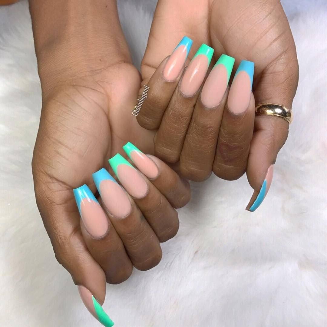 Игривые яркие краски в маникюре пестрят в летнее время. Но желающих выделиться даже в холодный сезон также не счесть. Все дело в правильных комбинациях цвета, позволяющих выглядеть дизайну всегда свежо, и при этом стильно. Для обратного френча допустимы любые комбинации: контрасты между цветами (желтый и синий, зеленый и розовый и т.д.), а также использование одного цвета, но в разных оттеночных вариантах. К примеру, эффектно смотрится светло-мятный и насыщенно зеленый.