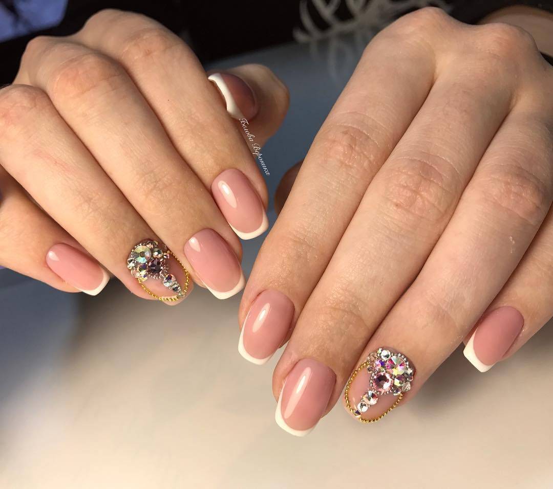 Наиболее часто для его создания используют светлые нейтральные оттенки, такие как бежевый, молочный, кремовый или светло-розовый. Эта та самая база, благодаря которой маникюр смотрится элегантно и стильно. При желании его можно украсить дополнительным декором в виде страз, бусин, скотч-ленты, пайеток или же дополнить стильным рисунком. Каждый вариант по-своему интересный и привлекательный.