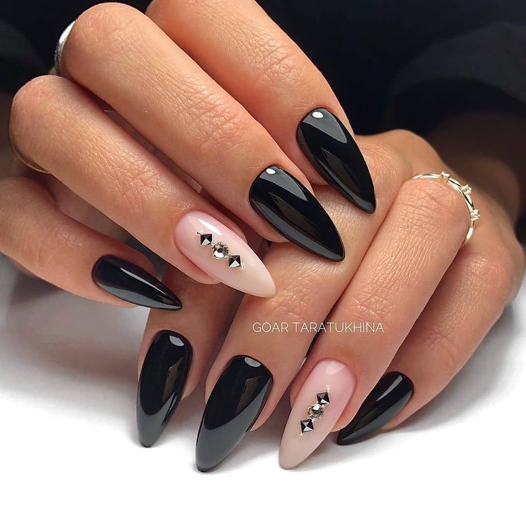 - Блестящий маникюр со стразами для вечернего образа 1