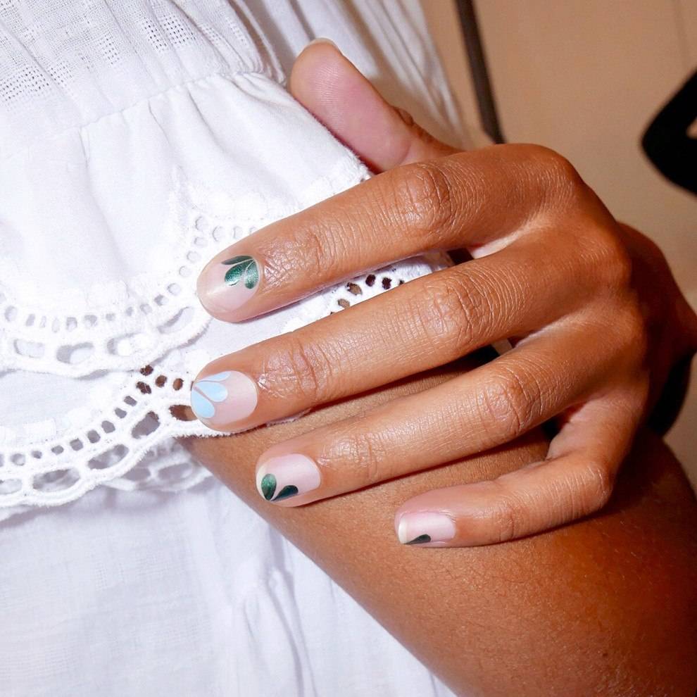 Неизменно популярной является цветочная и растительная тематика. Красиво смотрятся анималистические принты, надписи и ажурные узоры. Летом особенно актуальна радужная тема, а также легкий декор на нюдовой основе.