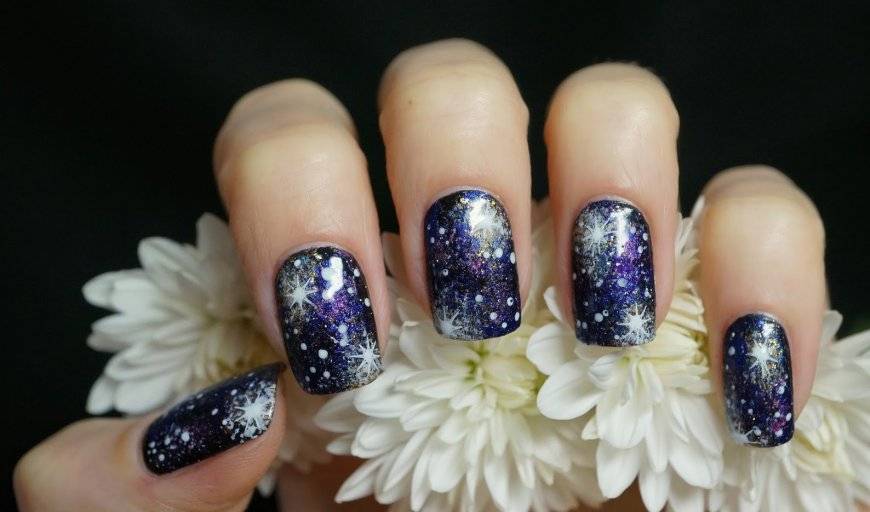 Украсить кончики пальцев можно разными способами: покрыть обычным лаком или гель-лаком, который полимеризуют в УФ-лампе. Любительницам нестандартных цветов можно сделать маникюр с изображением космоса.