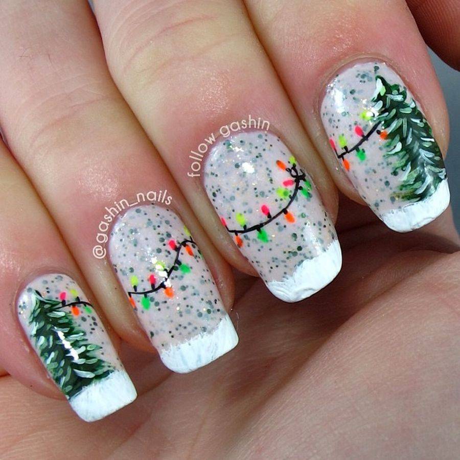 Новогодние рисунки на ногтях гель лаком пошагово