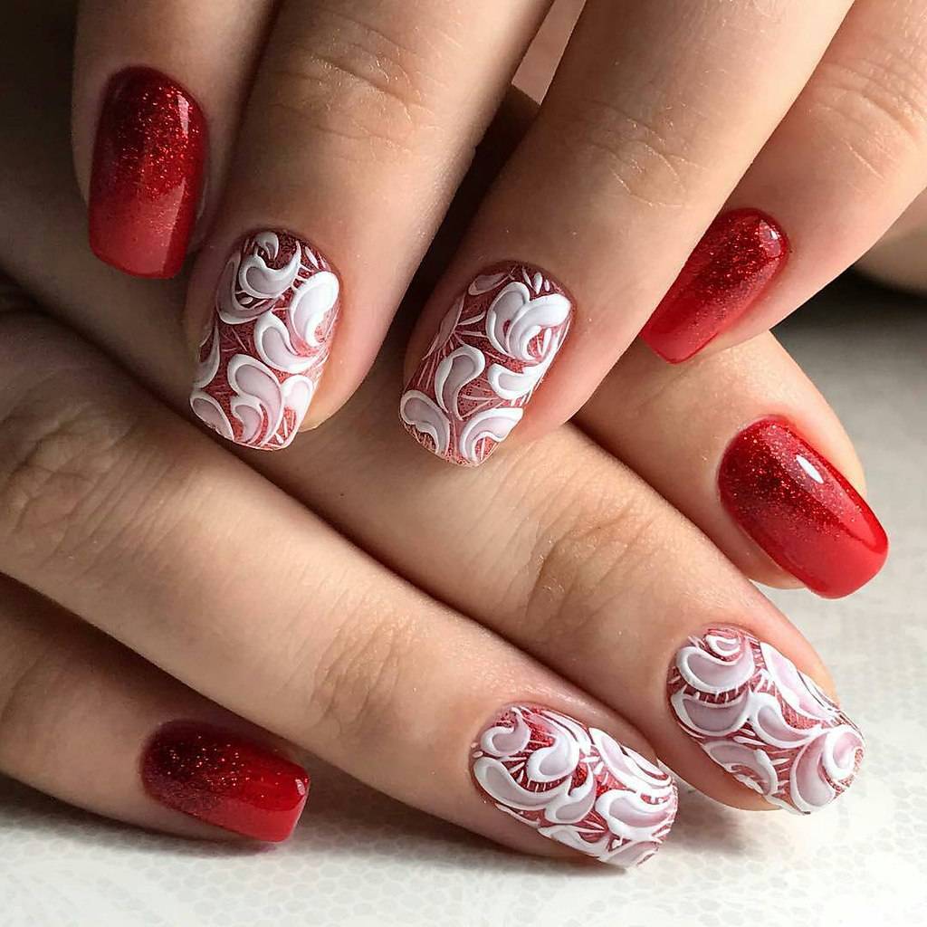 Красно-белый дизайн маникюра 2021-2022