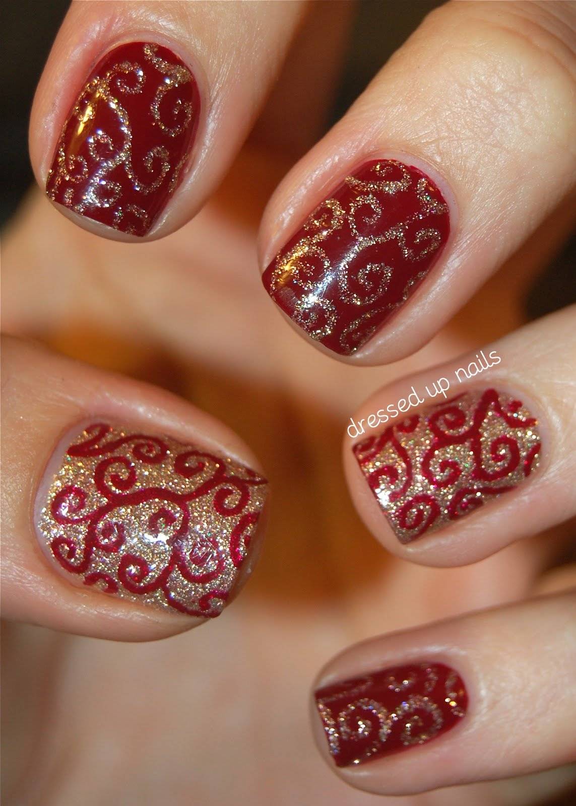 Если насыщенный красный цвет не для вас, то обратите внимание на бордовые тона. Такой дизайн великолепно смотрится в глянцевом и матовом оформлении со стразами и «золотыми» блестками