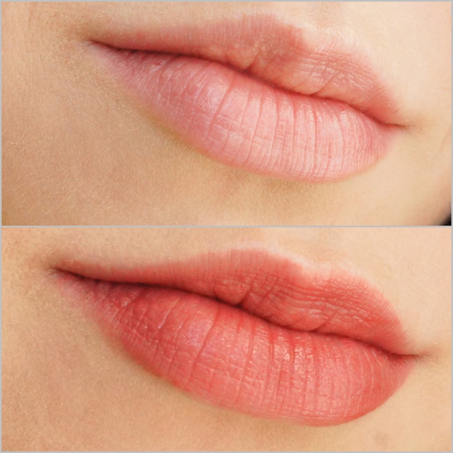 Недостатки: Может растекаться за контур губ. Небольшой объем.