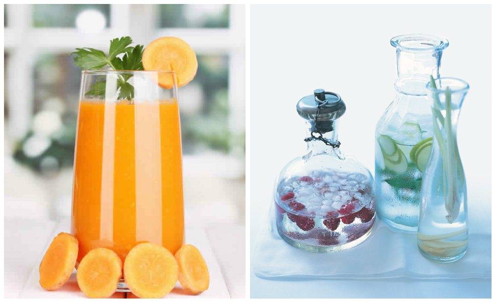 – напитки (имбирные и травяные чаи, вода с натуральным медом и лимонным соком, отвары петрушки, различные фруктовые фреши и овощные соки).