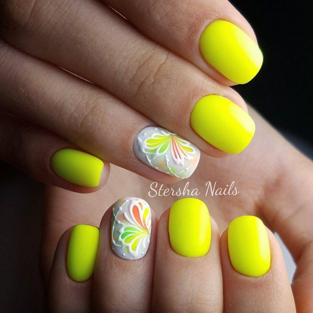 Яркие и нестандартные варианты однотонного маникюра – выбор молодых девушек, которые хотят максимально привлечь внимание к своей персоне. К тому же летняя погода и обилие природных красок подсказывает девушкам, что должно быть изображено на их ноготках