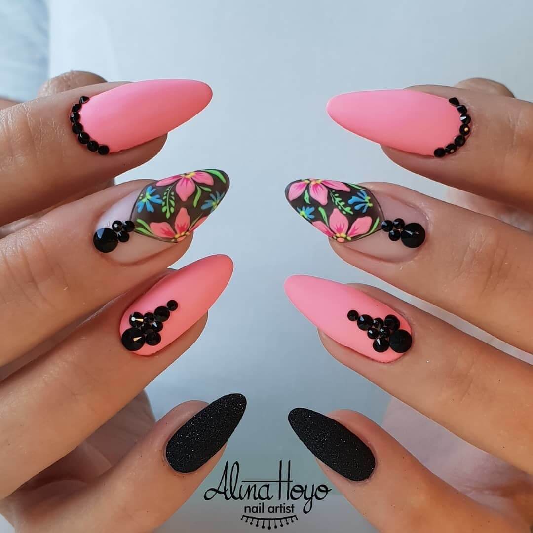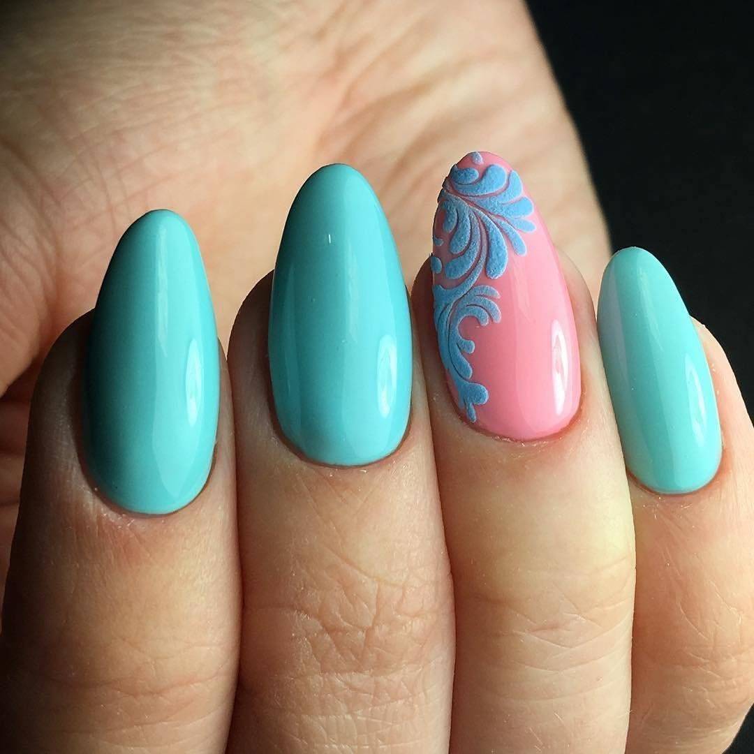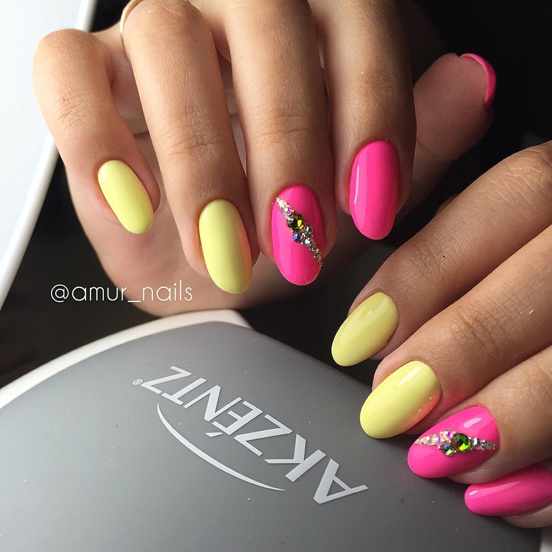 В тренде насыщенные оттенки: малиновый, сочно-зеленый, желтый, неоновые оттенки. Дополняйте яркий дизайн рисунками стемпингом черного или белого цвета, геометрическими узорами, точечным декором. В 2018 году на яркий маникюр нет практически никаких ограничений, все оттенки и дизайны будут встречены на ура.