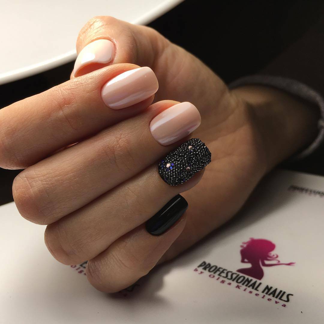 Отдельно стоит отметить нюдовый маникюр. Он всегда будет актуальным, независимо от времени года. Лучше всего смотрятся такие оттенки, как пудровый, бежевый или телесный. На ноготках они еле заметные, поэтому прекрасно подходят даже для рабочих дней в офисе. Но если подобный вариант для вас слишком скучный, то рекомендуем просто добавить акцент. К примеру, небольшой рисунок, надпись или дополнительный декор.