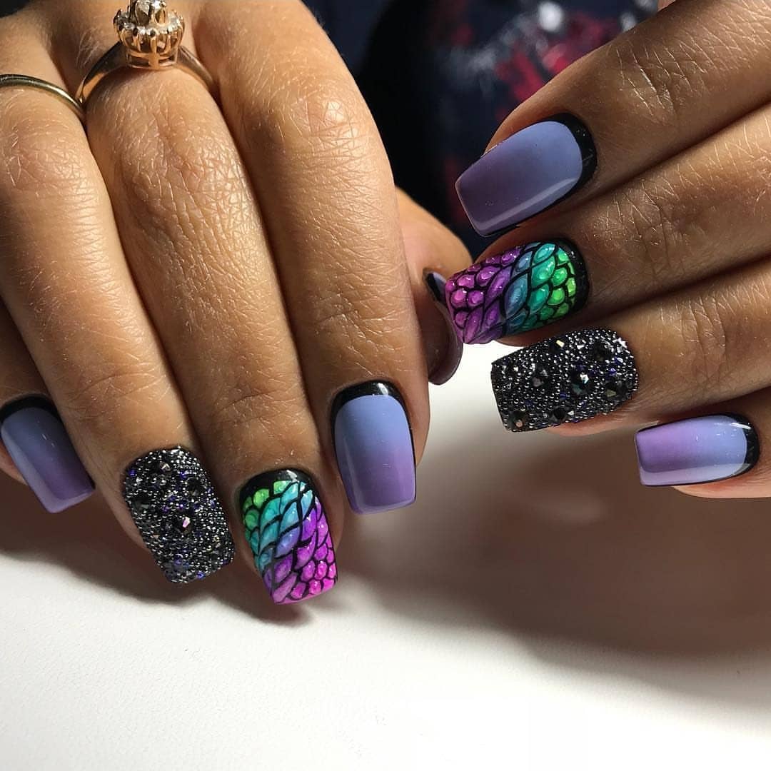 Что касается цветовой гаммы, то в 2018 году нет никаких табу и ограничений. Можно смело выбирать понравившийся вариант и при этом быть в тренде. Но все же отметим, что чаще всего в маникюре используется черный, зеленый, красный, синий и фиолетовый оттенки. Они наиболее характерны для холодного времени года.