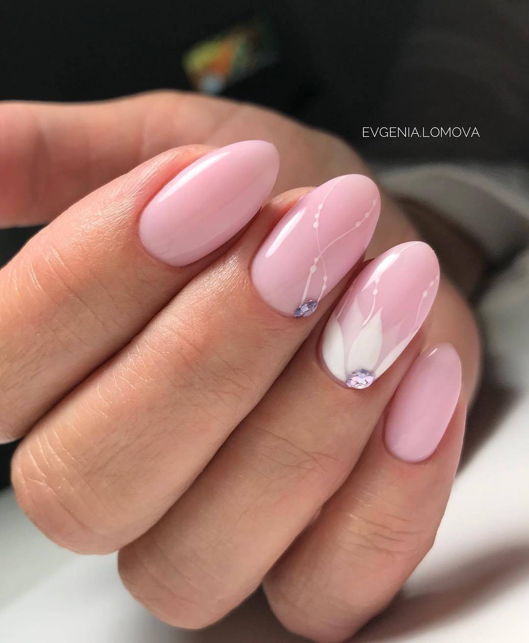 Минималистичные дизайны. Минимализм и деловой стиль – совершенно неотъемлемые друг от друга вещи. Все в этом дизайне смотрится строже и «правильнее». Маникюр не исключение. Минималистичные ногти смотрятся настолько гармонично, будто вся концепция маникюра была создана под этот стиль. От удачного сочетания маленьких, чуть заметных цветочных узоров, небольших линий, штрихов и точек можно просто прийти в восторг. Делают их обычно тоже с помощью стемпинга. А естественные оттенки излучают сдержанную нежность. С минимализмом невозможно прогадать, будь это деловой стиль, романтический ужин или вечеринка в честь дня рождения.