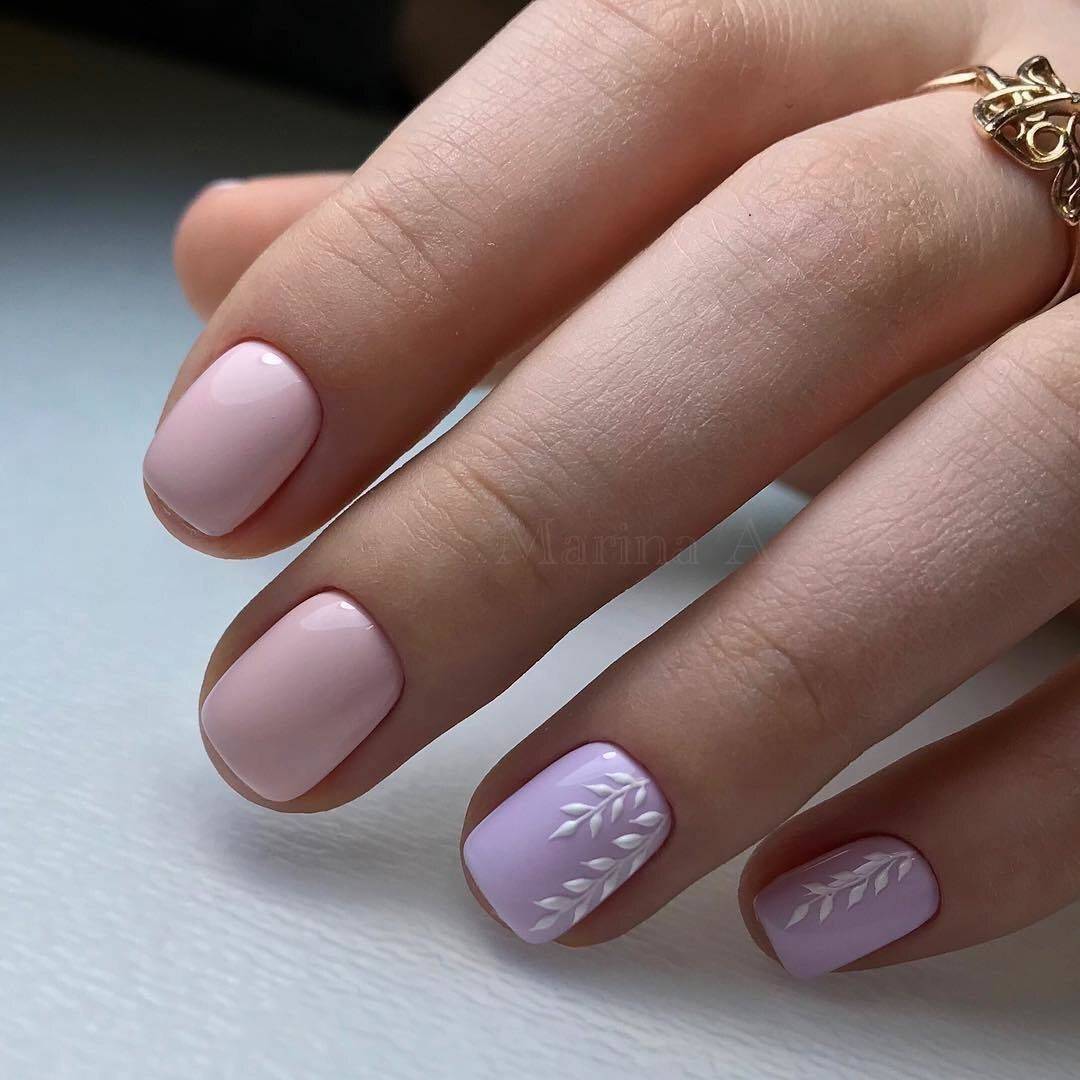 Актуальными узорами в маникюре минимализм является флористика, геометрия, геометрические животные, абстрактные узоры с дымкой. Для маникюра минимализм можно использовать не только светлые оттенки, но и такие цвета как горчичный, светло-голубой, сиреневый и другие.
