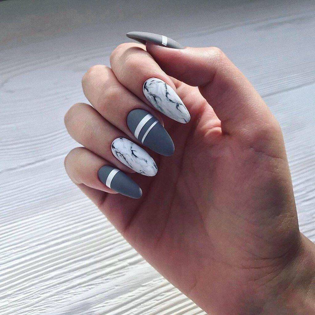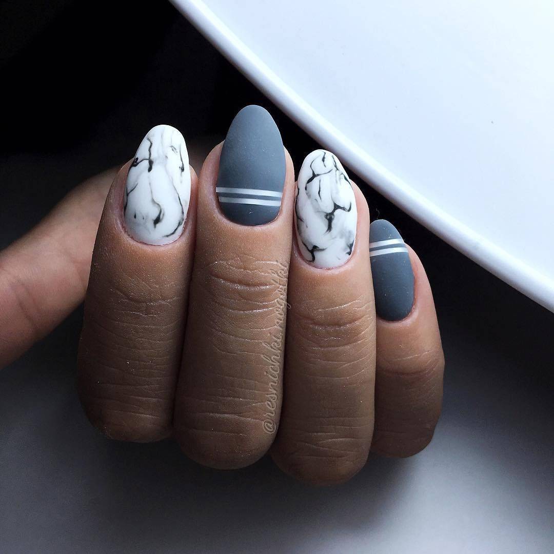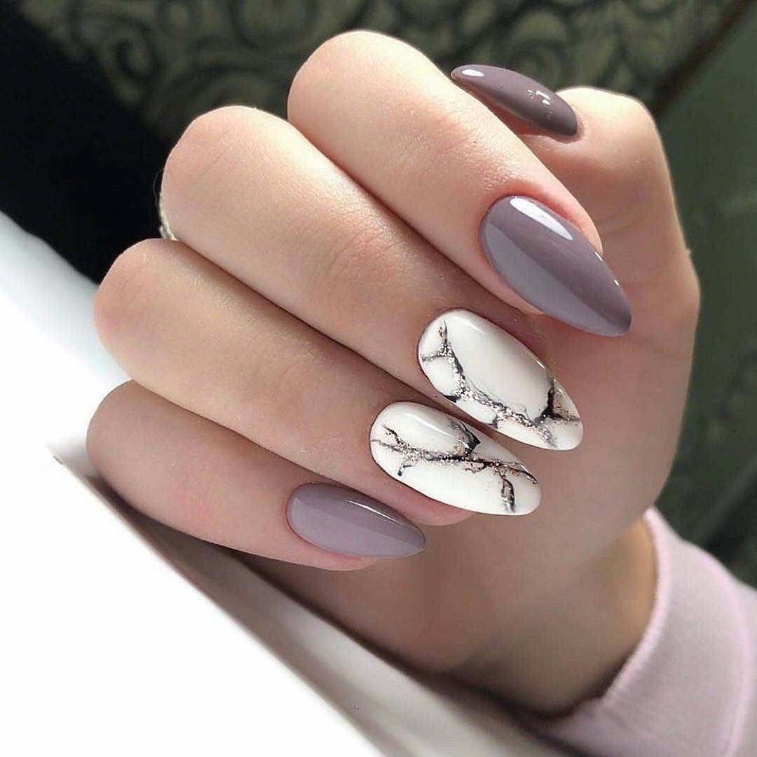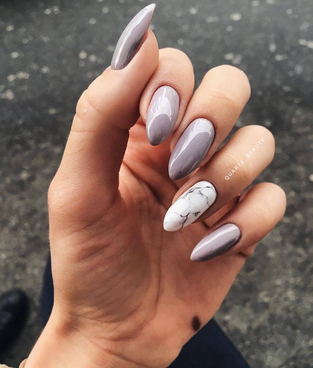 - серый – классический вариант для мраморного маникюра, который отлично впишется в ваш офисный стиль