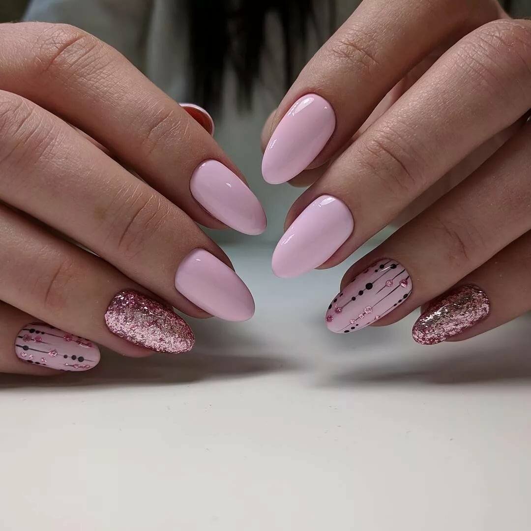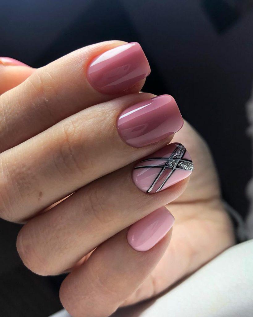 - розовый – выглядит ярче и нежнее, чем серый маникюр. Может быть использован вместе с золотым или серебряным глиттером.