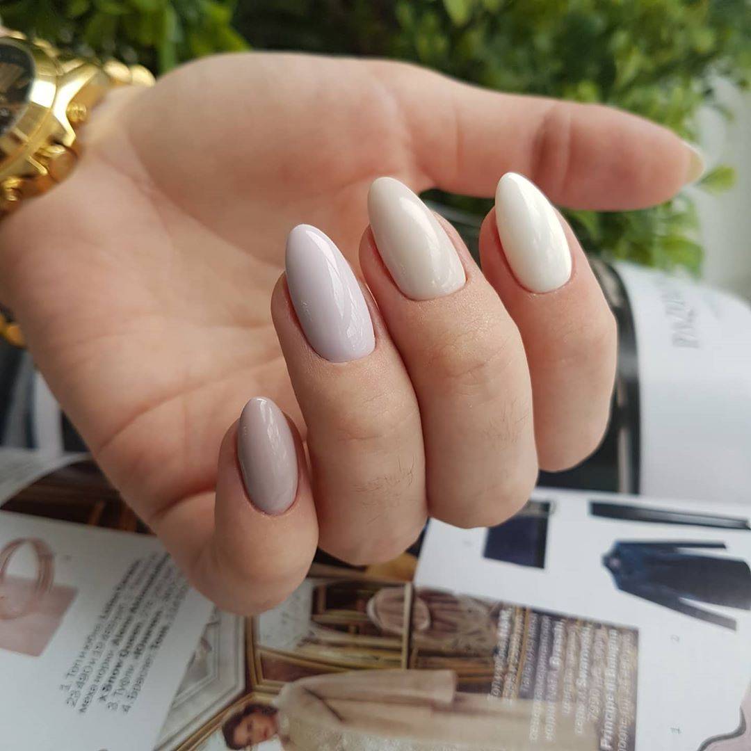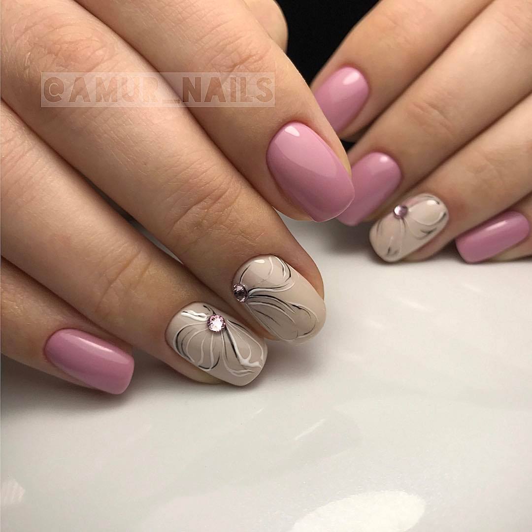 Пепельно-лавандовый, коралловый, оливковый и серый — выглядят красиво и неярко и станут прекрасной идеей для маникюра в офисном стиле. Элегантные и сдержанные ногти для работы можно дополнить легким блеском жемчужной втирки или несколькими стразинами, которые отлично оттеняют приглушенные тона.