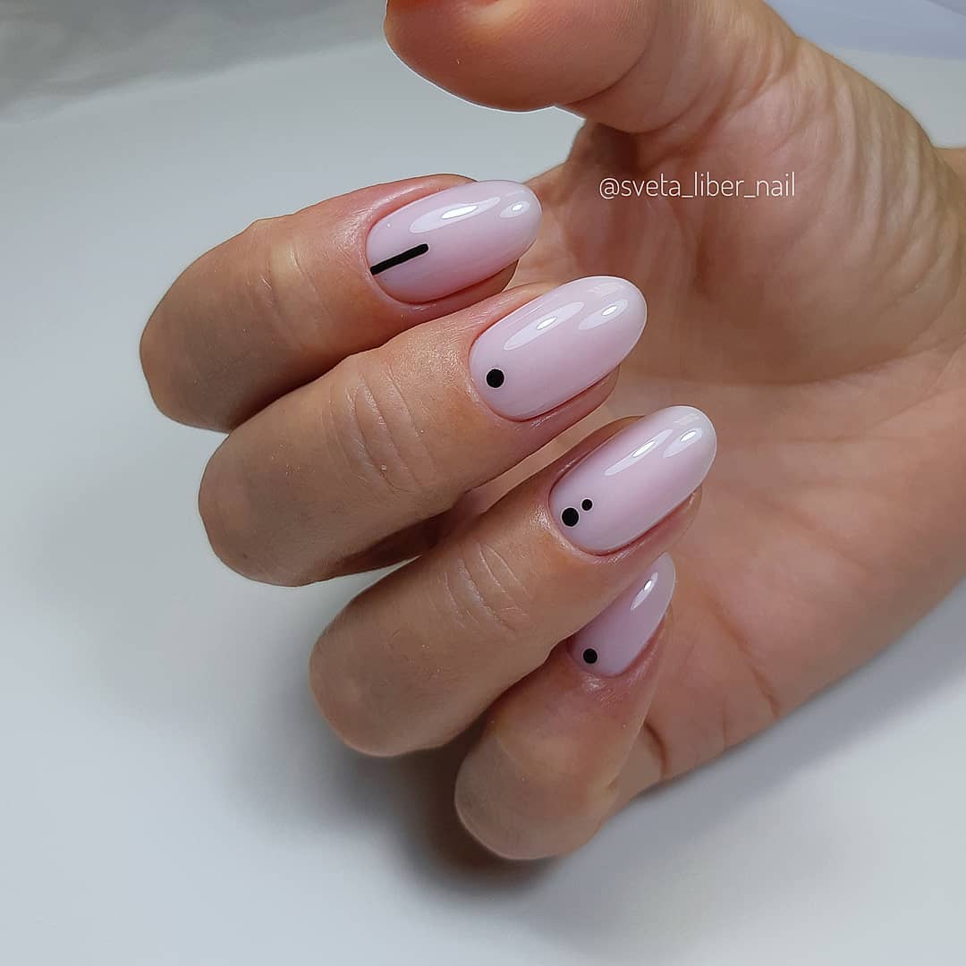 Мелкие бульонки также могут вписаться в офисный стиль, если выбрать прозрачные бусинки и нанести их на фоновое покрытие нейтрального оттенка. Достаточно будет украсить только один ноготь на каждой руке или выложить их в простой узор.