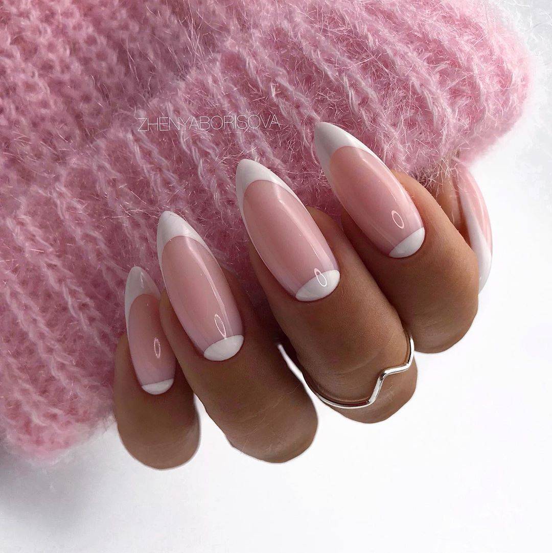 Лунный. Нежный и сдержанный дизайн, который идеально вписывается в деловой дресс-код. Оформлять такой маникюр можно в базовом исполнении с полукруглыми лунками, так и с квадратными, ровными или даже треугольными. Также лунки можно выделить, оформив их контрастным по цвету или фактуре декоративным покрытием.