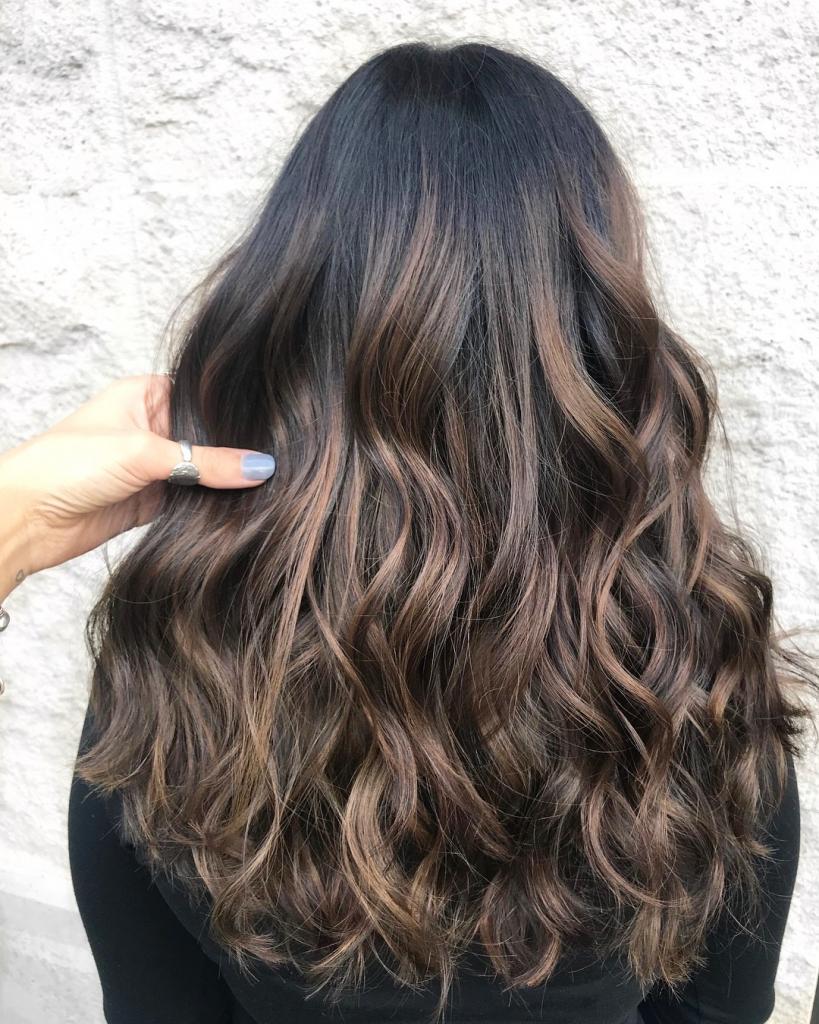 Балаяж на темные длинные волосы, фото
